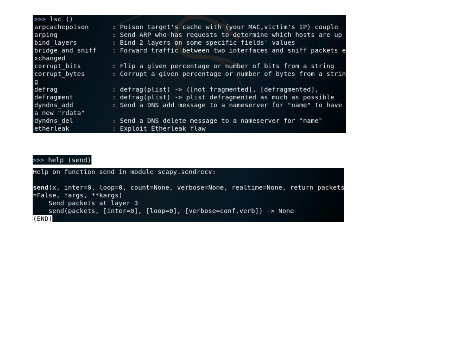 lệnh “send”. Nếu muốn hiển thị danh sách lệnh có sẵn trong Scapy thì dùng lệnh như hình bên dưới. lOMoAR cPSD| 60752940