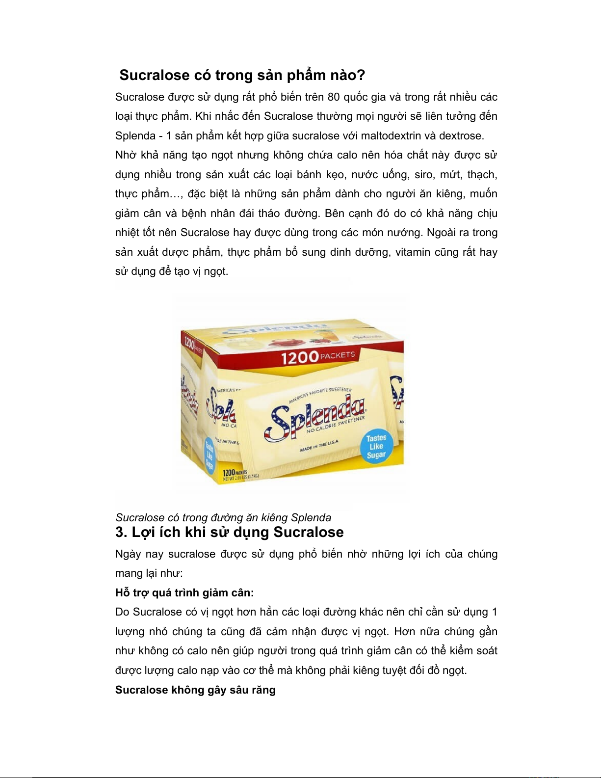 loại thực phẩm. Khi nhắc đến Sucralose thường mọi người sẽ liên tưởng đến