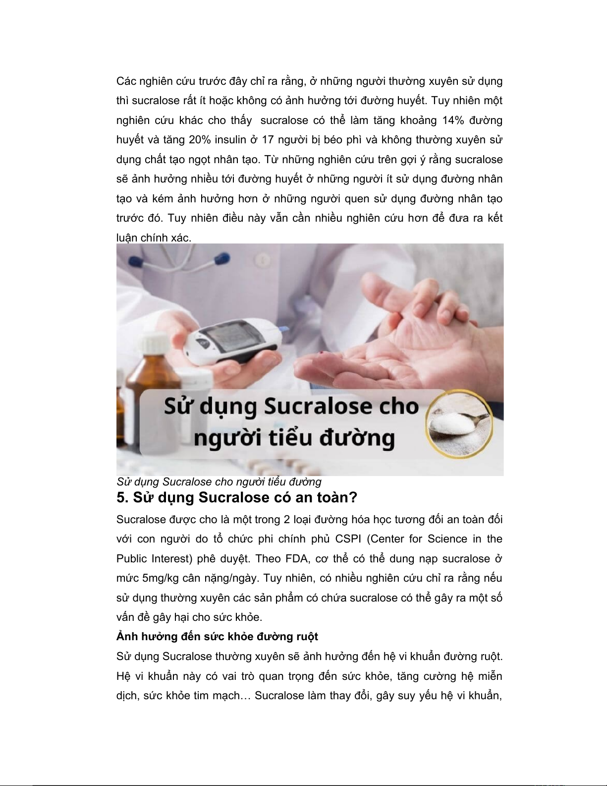 dụng chất tạo ngọt nhân tạo. Từ những nghiên cứu trên gợi ý rằng sucralose