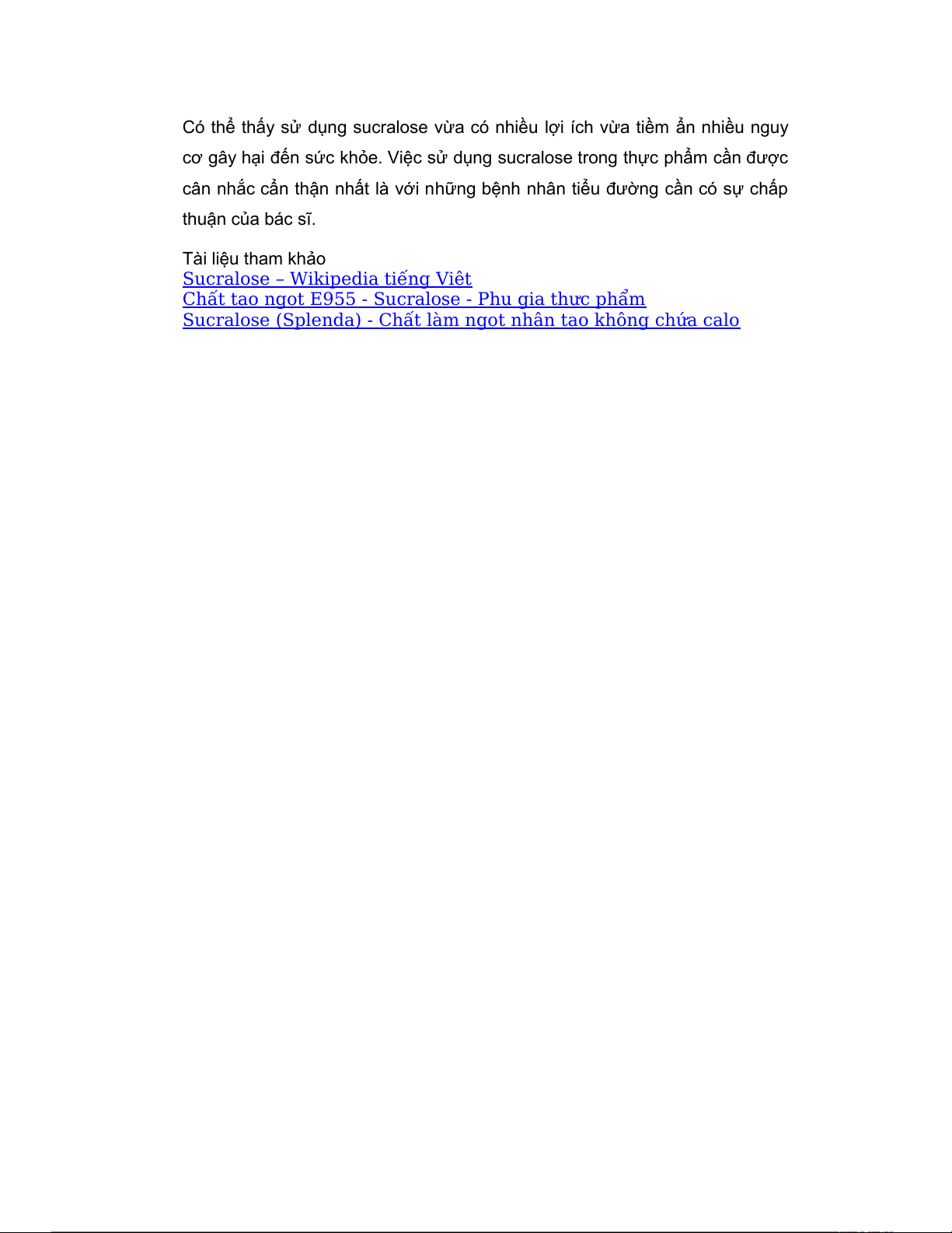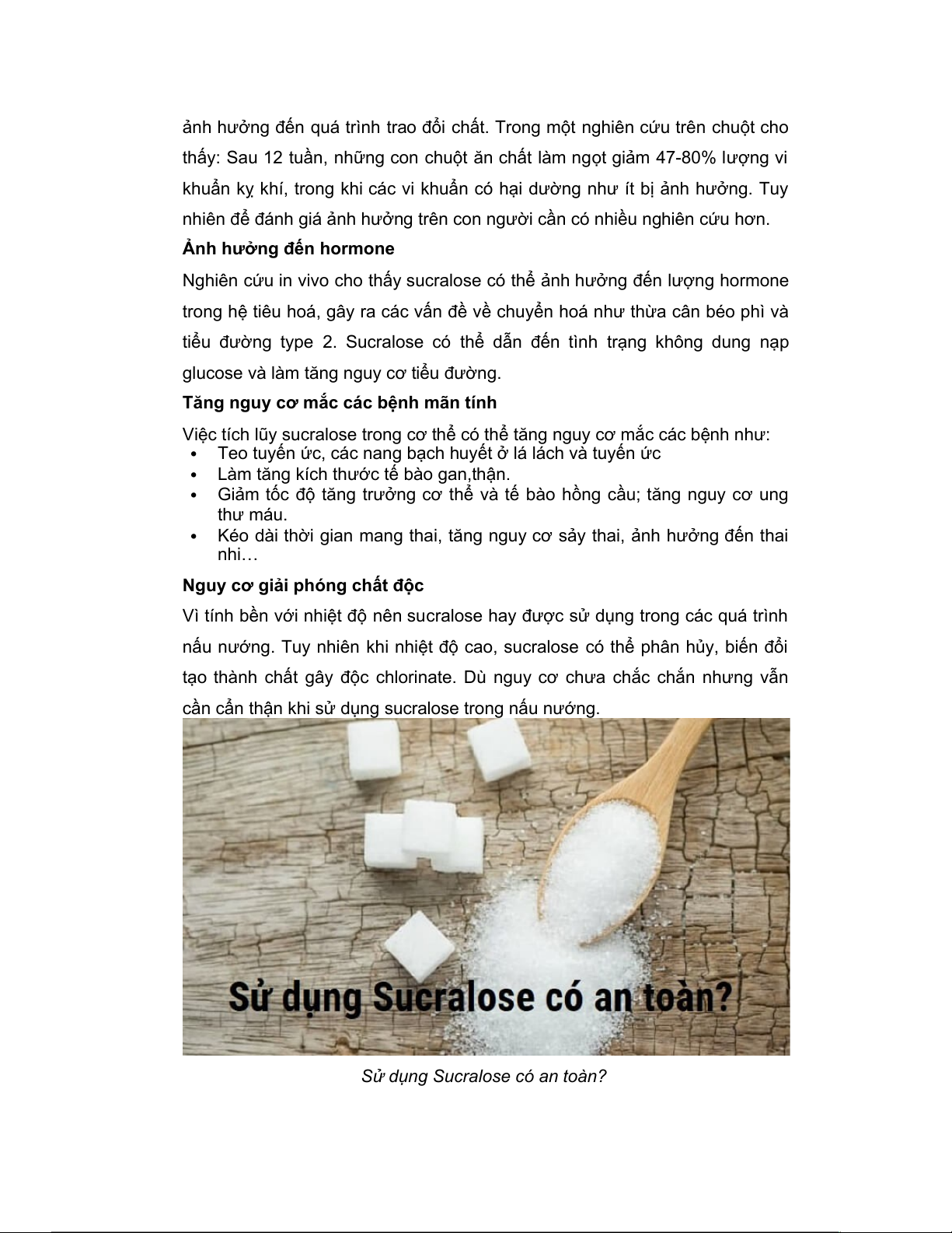 cơ gây hại đến sức khỏe. Việc sử dụng sucralose trong thực phẩm cần được