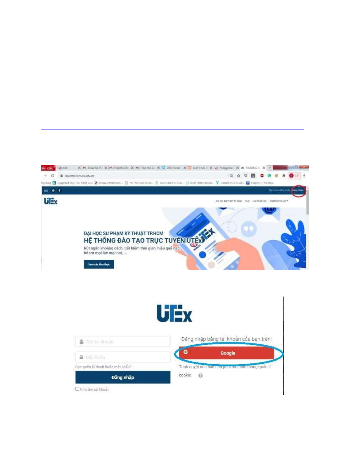 Địa chỉ truy cập https://utexlms.hcmute.edu.vn