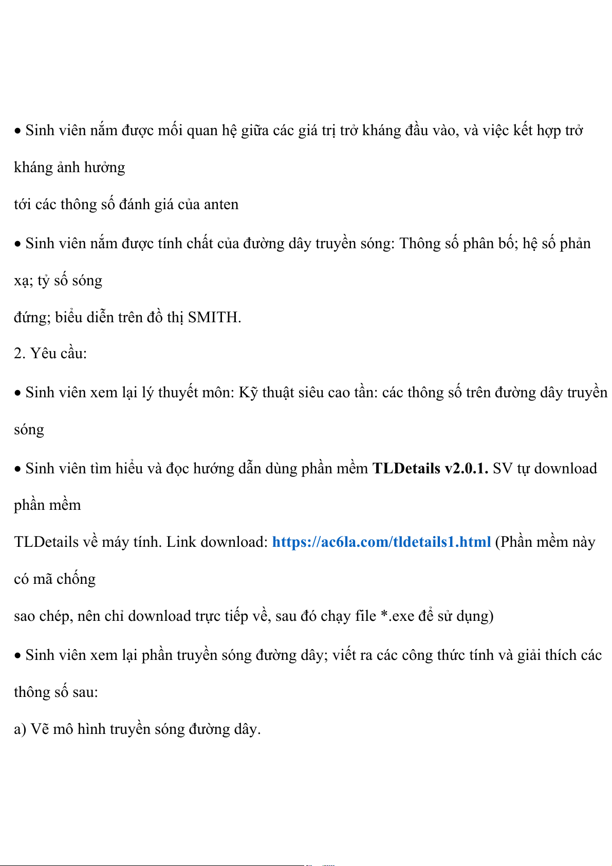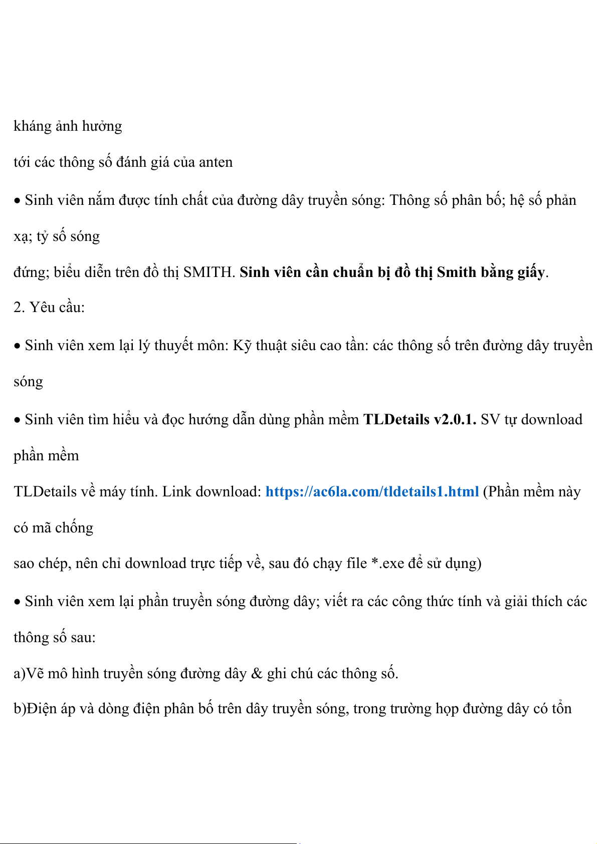 Bài thí nghiệm 1: Dùng phần mềm TLDetails v2.0.1 để tính các thông số trên đường dây truyền sóng 1. Mục tiêu thí nghiệm: