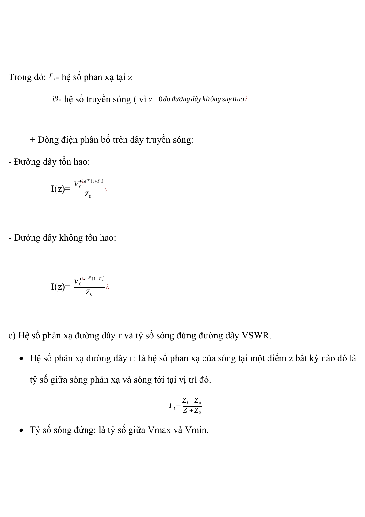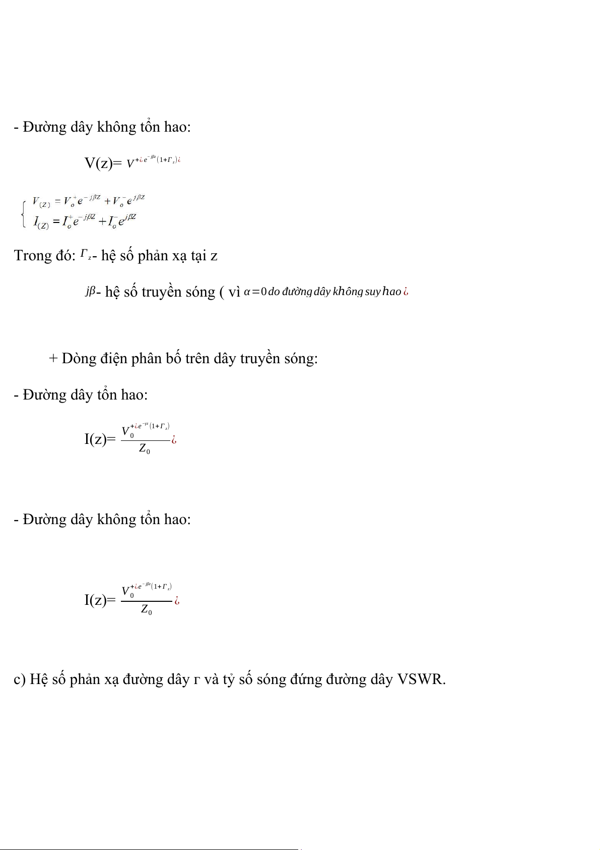 + Dòng điện phân bố trên dây truyền sóng: - Đường dây tổn hao: