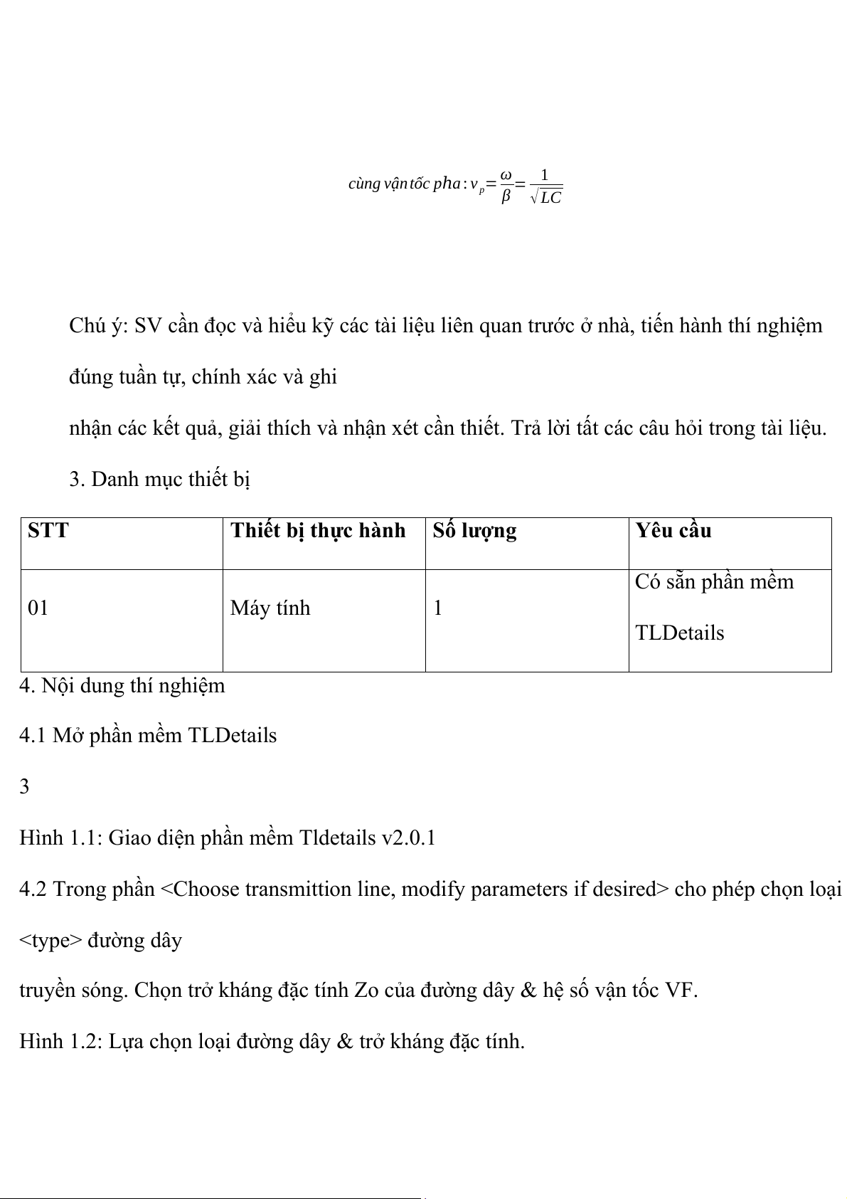 Bài thí nghiệm 1: Dùng phần mềm TLDetails v2.0.1 để tính các thông số trên đường dây truyền sóng 1. Mục tiêu thí nghiệm 2. Yêu cầu 3. Danh mục thiết bị 4. Nội dung thí nghiệm