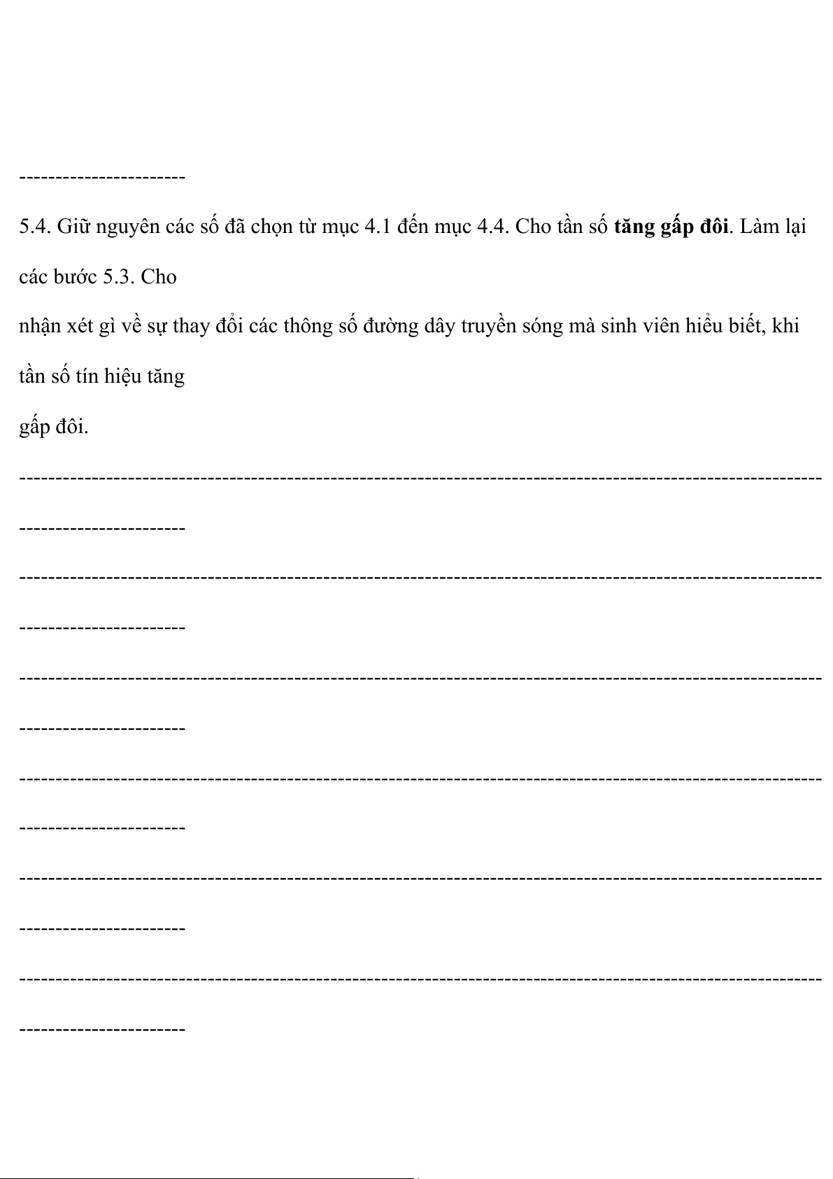 nhận xét gì về sự thay đổi các thông số đường dây truyền sóng mà sinh viên hiểu biết, khi tần số tín hiệu tăng gấp đôi.
