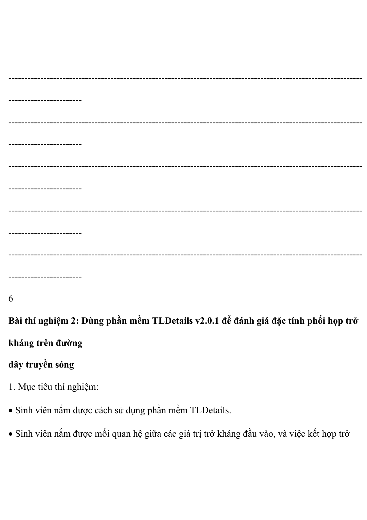Bài thí nghiệm 2: Dùng phần mềm TLDetails v2.0.1 để đánh giá đặc tính phối họp trở kháng trên đường dây truyền sóng 1. Mục tiêu thí nghiệm: