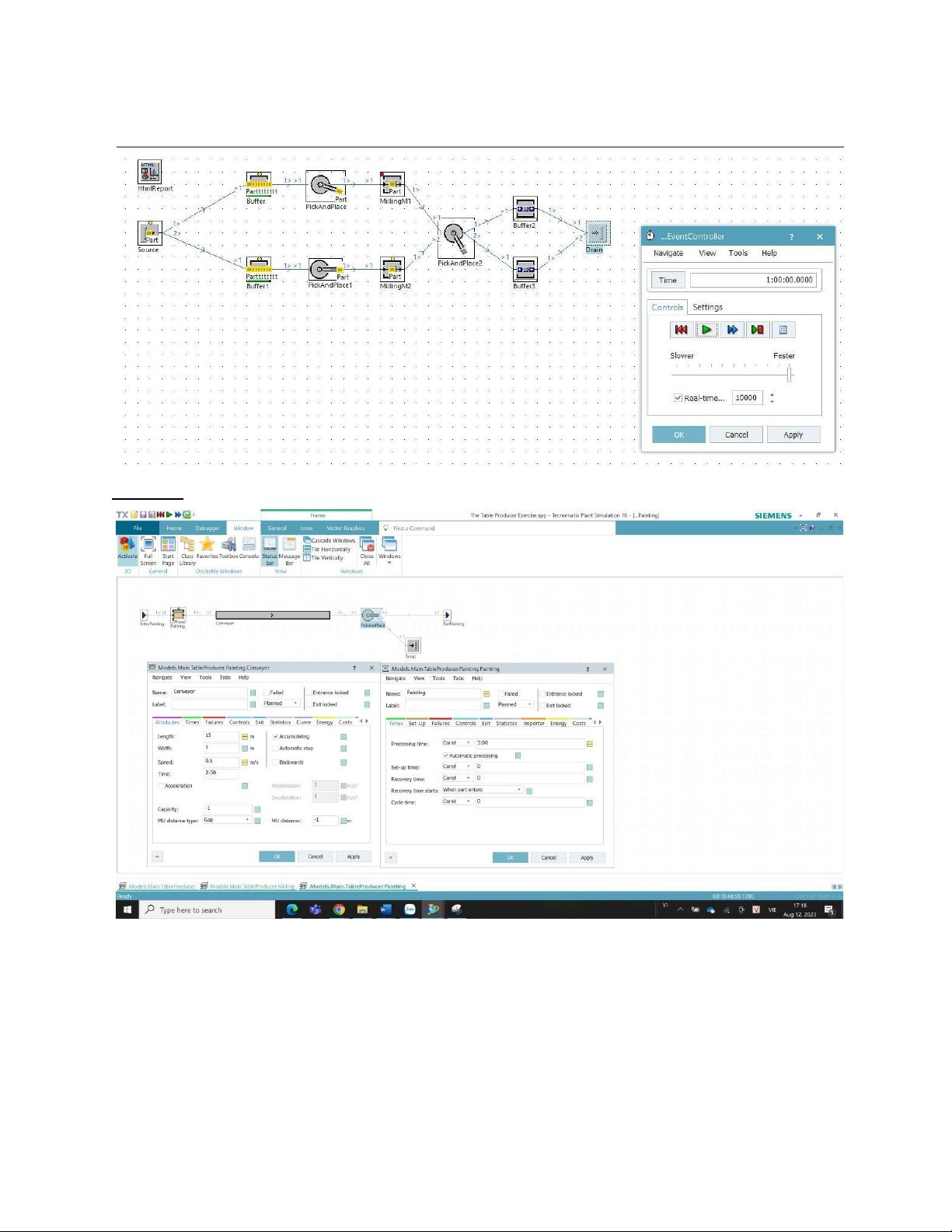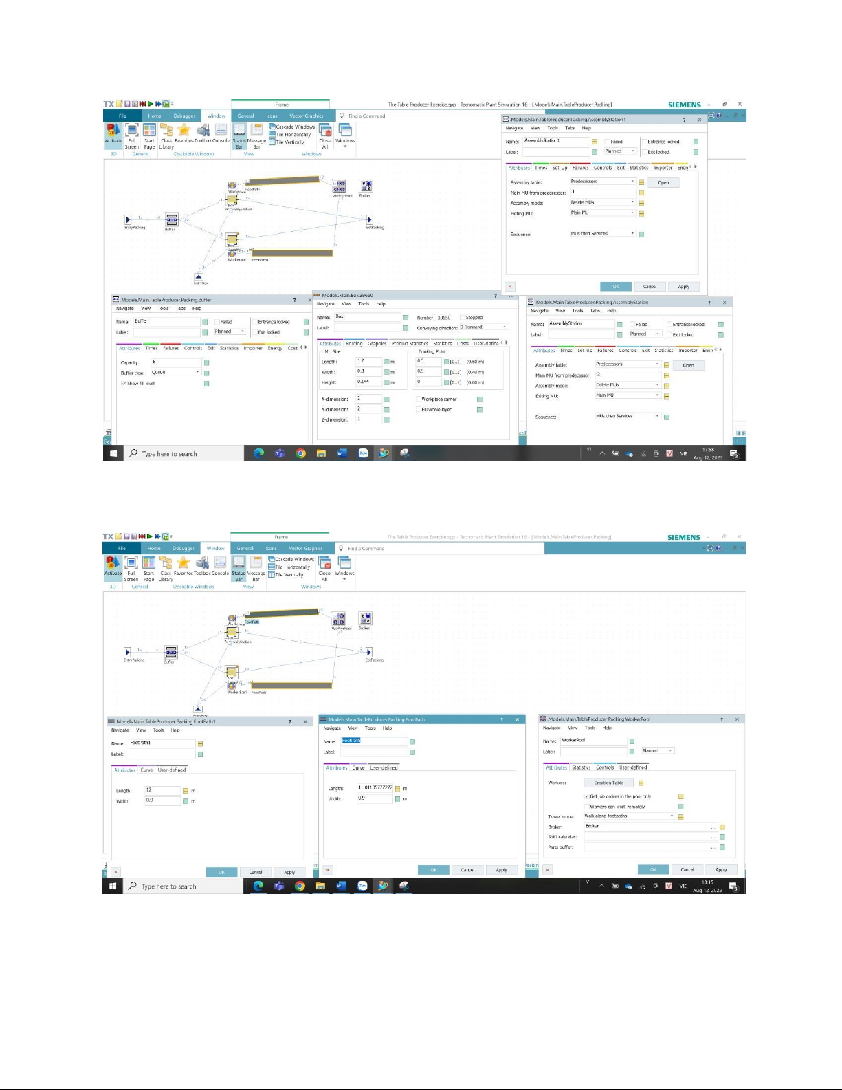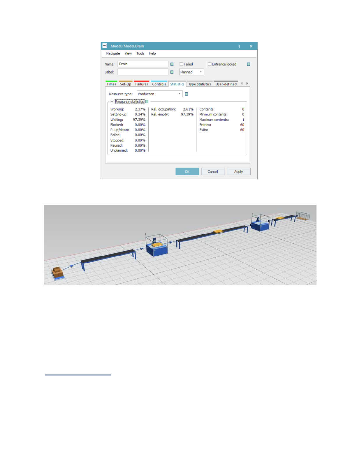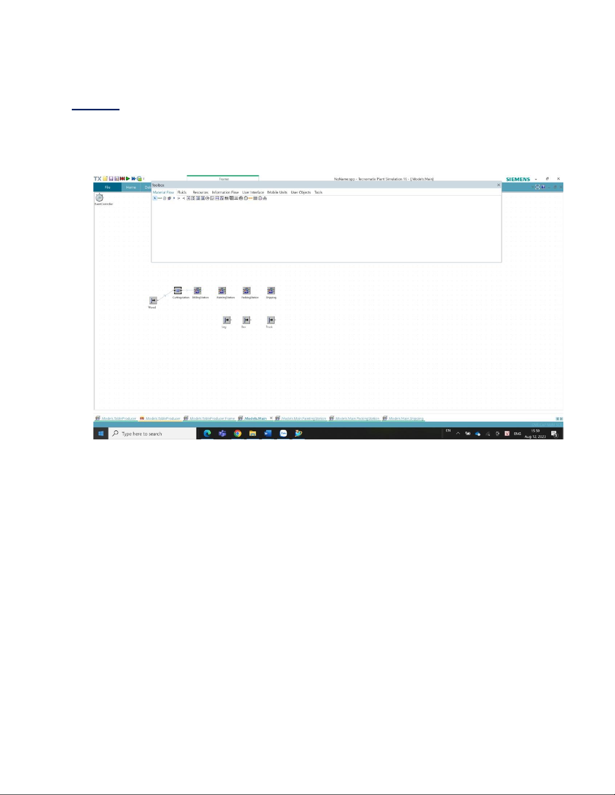 Thời gian bắt đầu cấp 6:00 AM MU Thời gian kết thúc cấp 7:00 AM MU Loại MU Container Container Chiều dài 0.5 m Chiều rộng 0.3 m Chiều cao 0.2 m Conveyor1 Chiều dài 6 m Chiều rộng 0.8 m Tốc độ 0.2 m/s MS Thời gian xử lý 30s/sản phẩm Thời gian set up 2 phút 30s Conveyor2 Chiều dài 12 m Chiều rộng 0.8 m Tốc độ 0.25 m/s AS Thời gian xử lý 20s/sản phẩm Thời gian set up 1 phút 30 s Conveyor3 Chiều dài 5 m Chiều rộng 0.8 m Chiều cao 0.1 m/s Drain Thời gian xử lý 10s Thời gian set up 1 phút