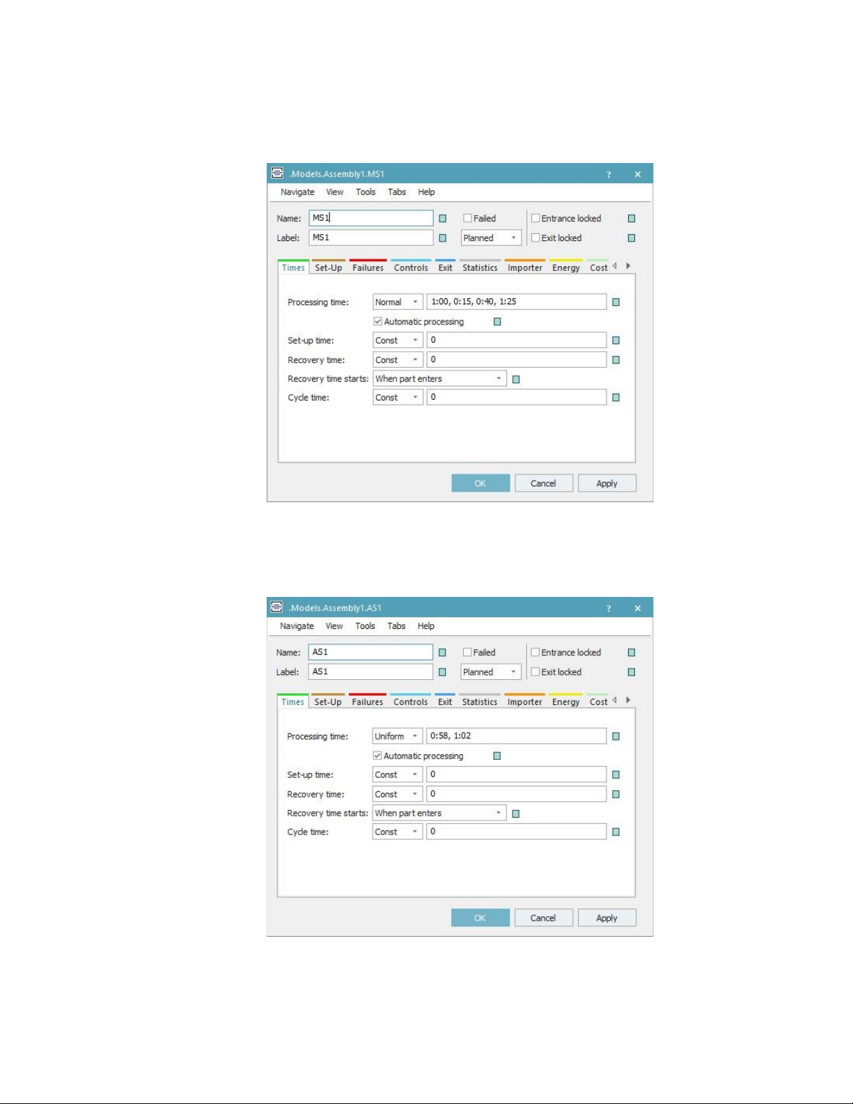CuttingStation và hệ thống sẽ hiện ra cửa số như sau, vào tab Time để đổi processing time là 3 phút