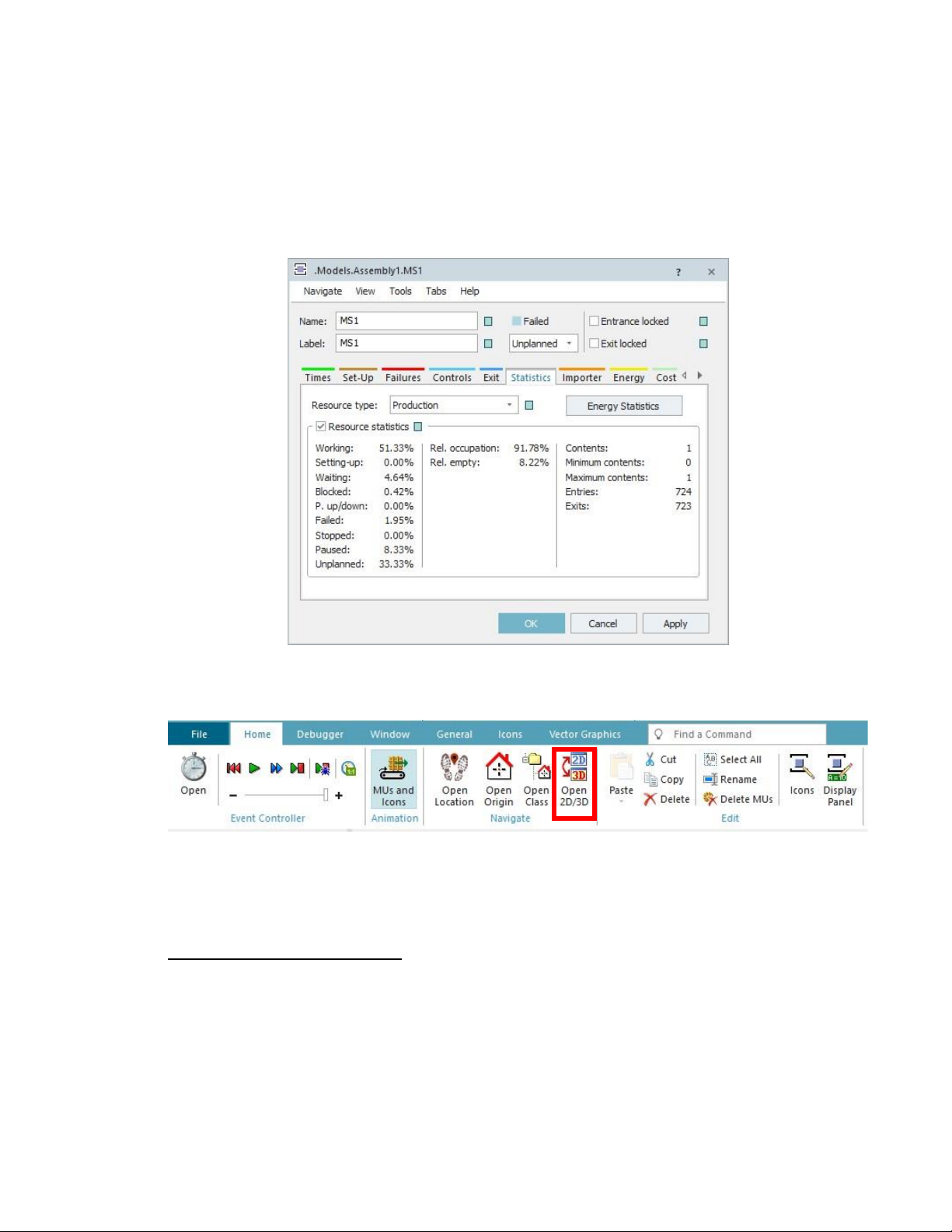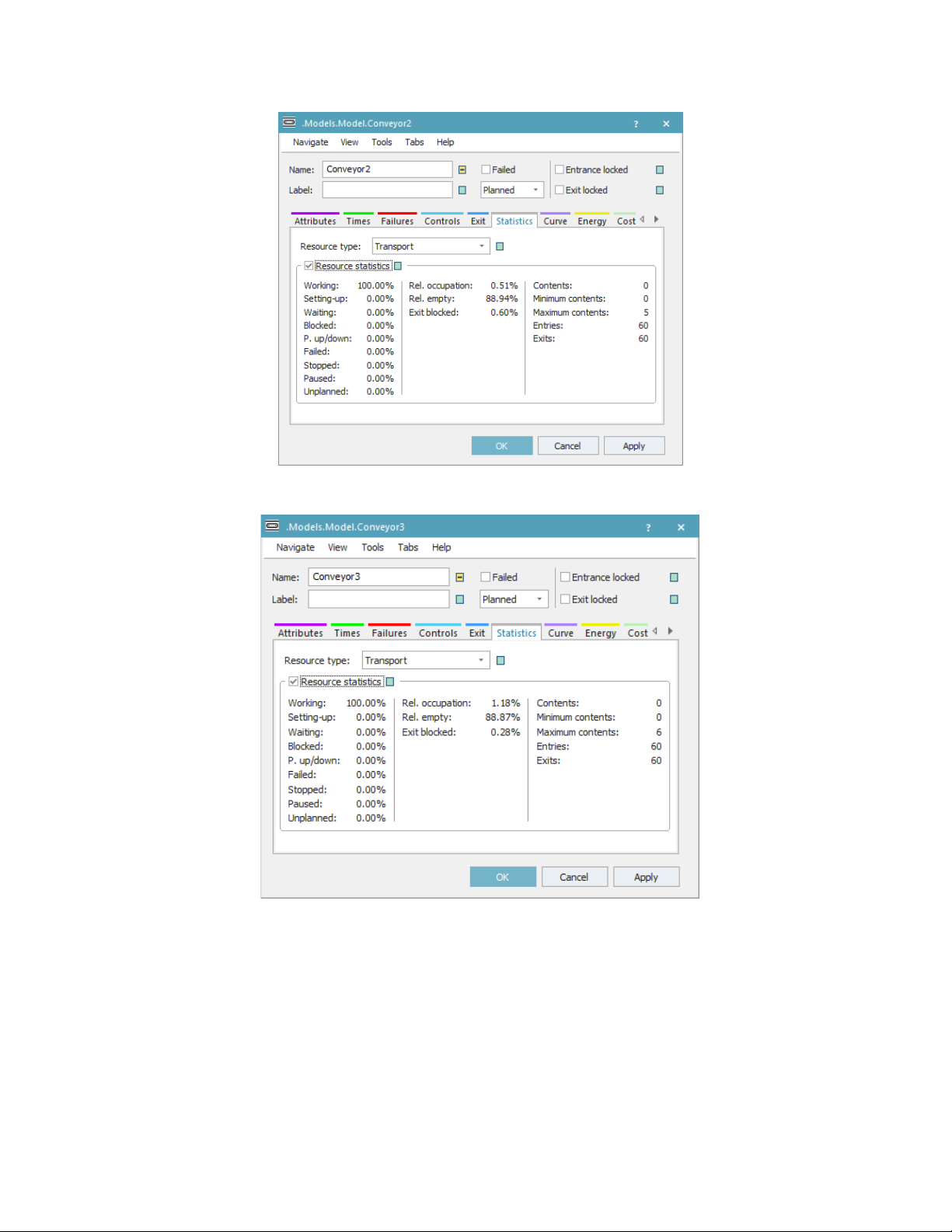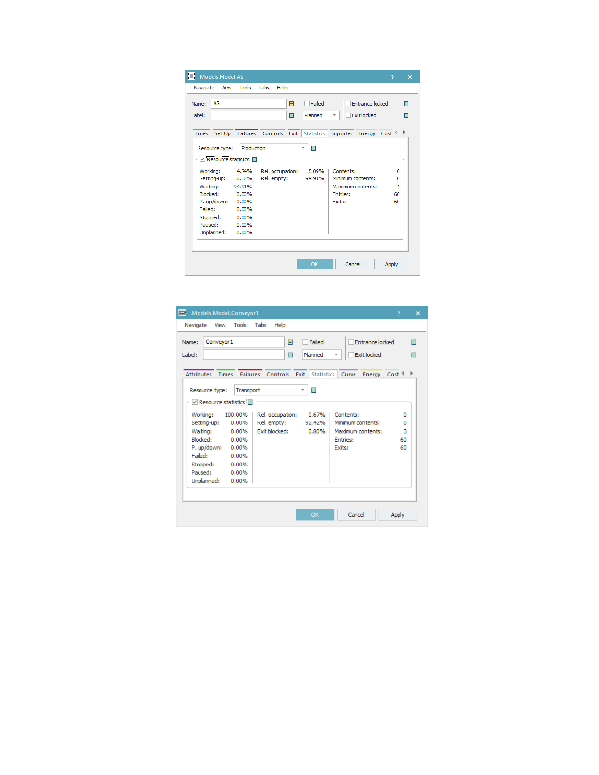 trên các bảng đánh giá Statistics của từng trạm sản xuất và từng băng tải: