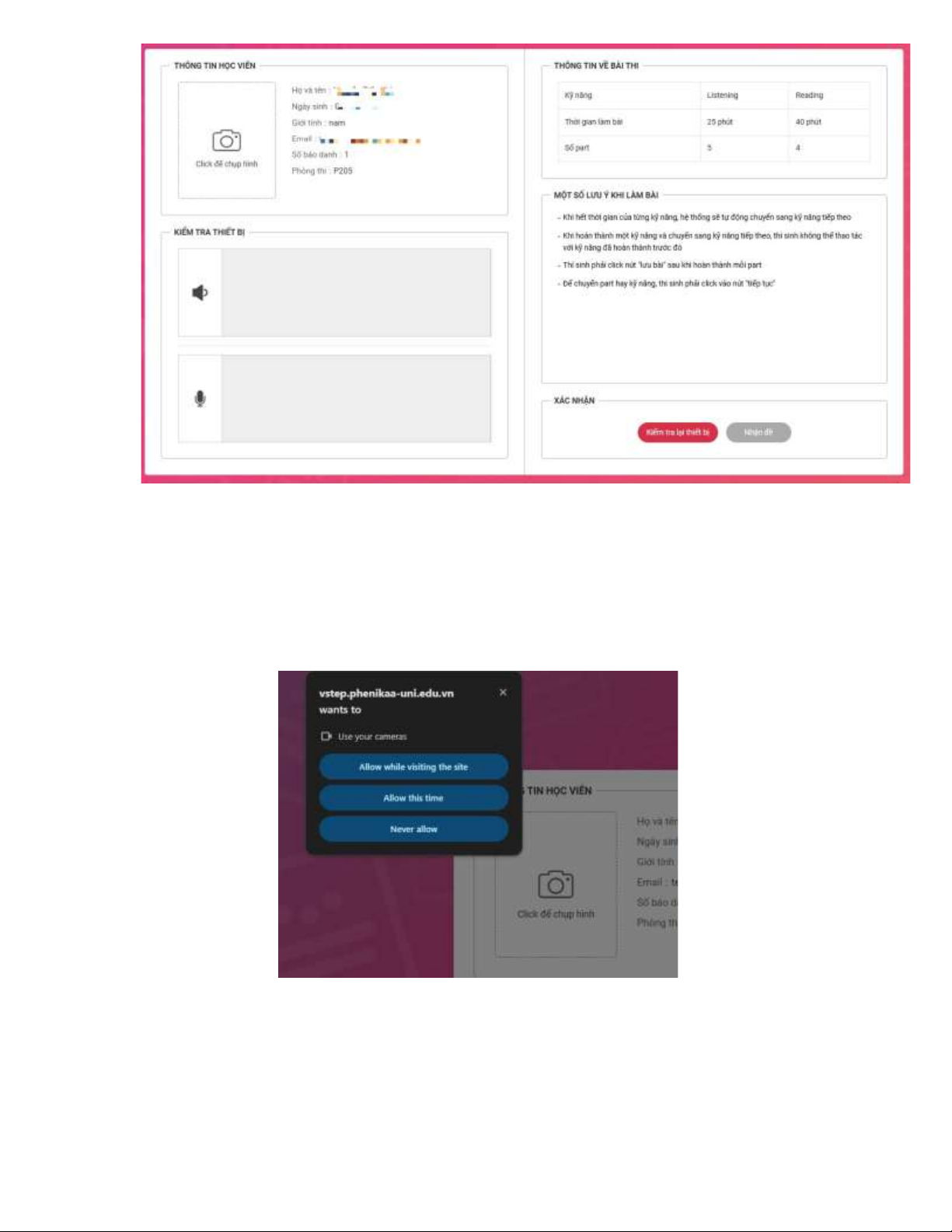 cập vào camera của máy tính, lúc này thí sinh lựa chọn Allow như hình dưới đây (hình 6).