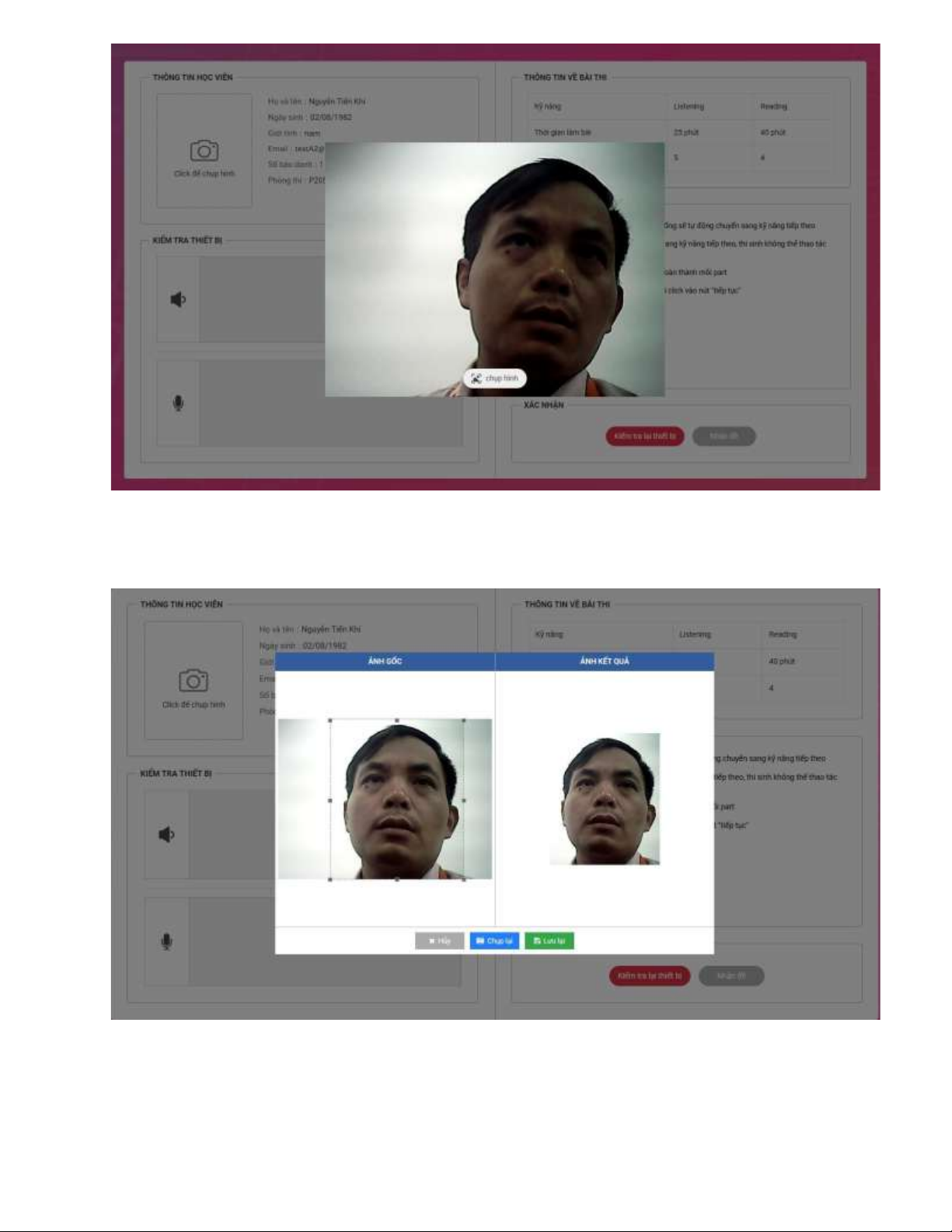 thí sinh nhấn nút “Chụp hình” để chụp lại hình ảnh khuôn mặt của mình như Hình 7. 5 lOMoAR cPSD| 59561451