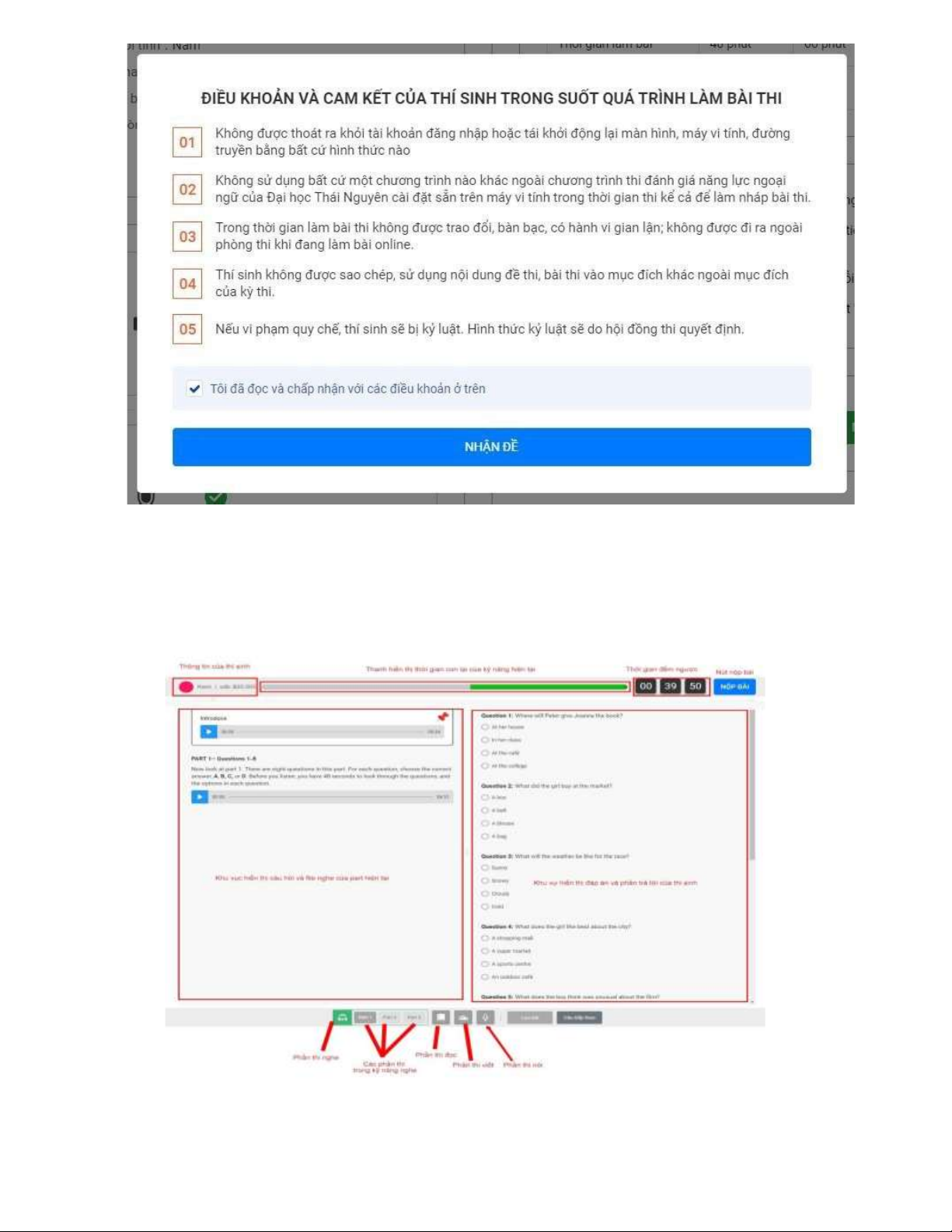 của thí sinh. Thí sinh đọc các điều khoản rồi click vào nút chấp nhận “Tôi đã đọc và chấp nhận