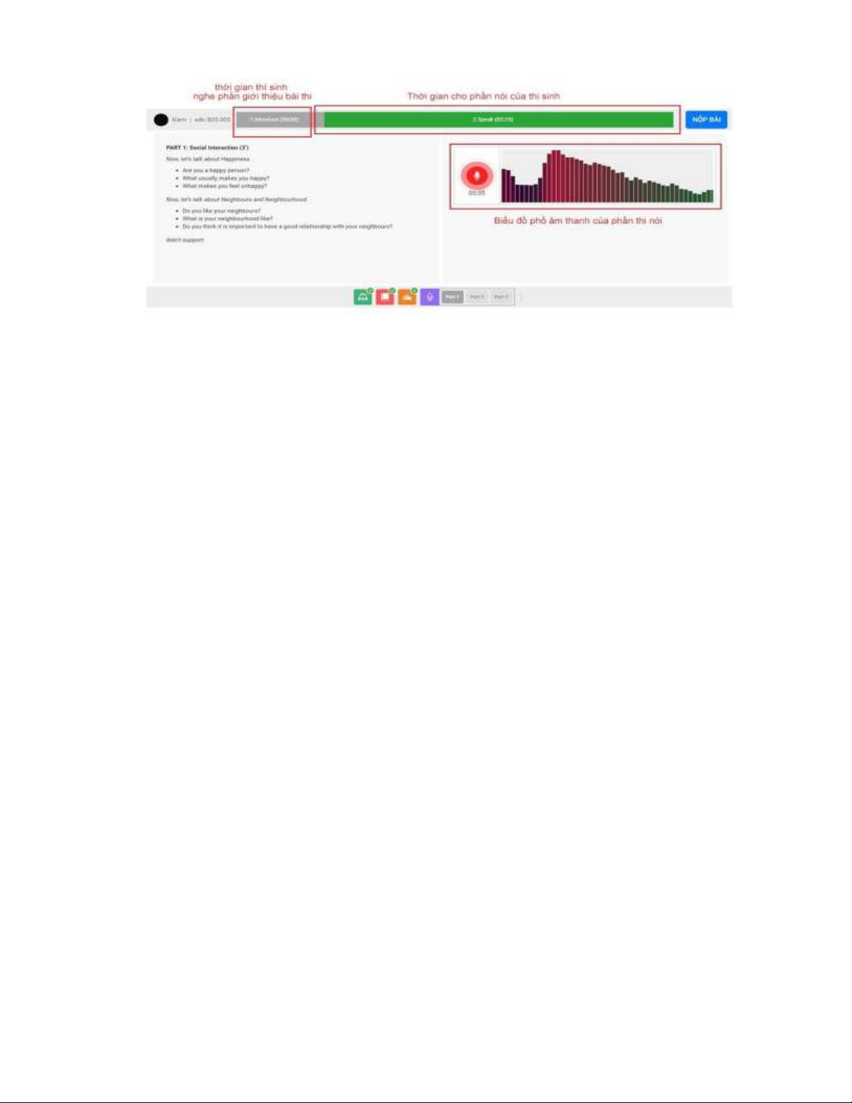- Phần thi Nói thí sinh không thao tác vào bàn phí và chuột. Sử dụng tai nghe và thực hiện