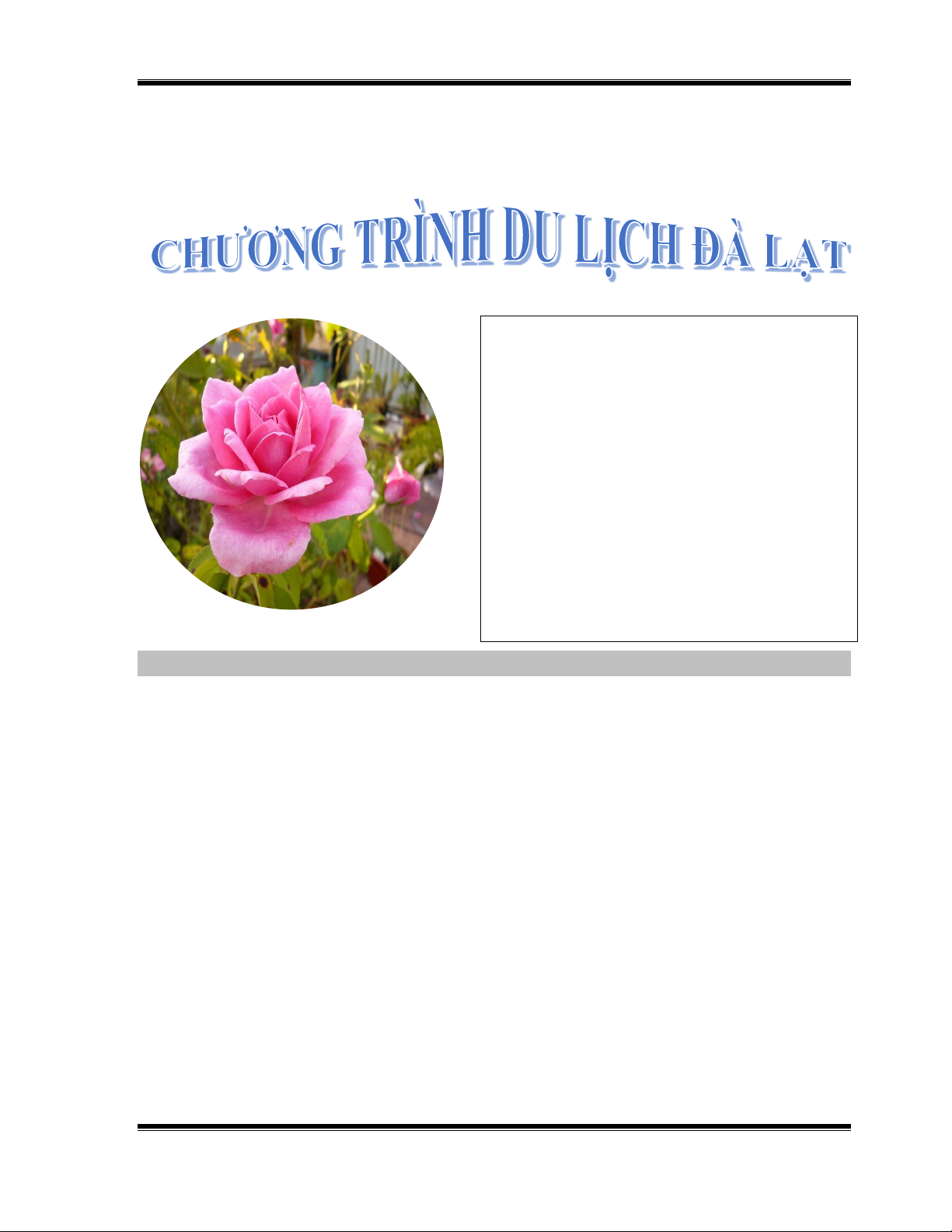 Khi tới à Lạt quý khách có thể nghỉ chân tại các khách sạn : TÊN KHÁCH HÀNG ĐỊA CHỈ ĐIỆN THOẠI