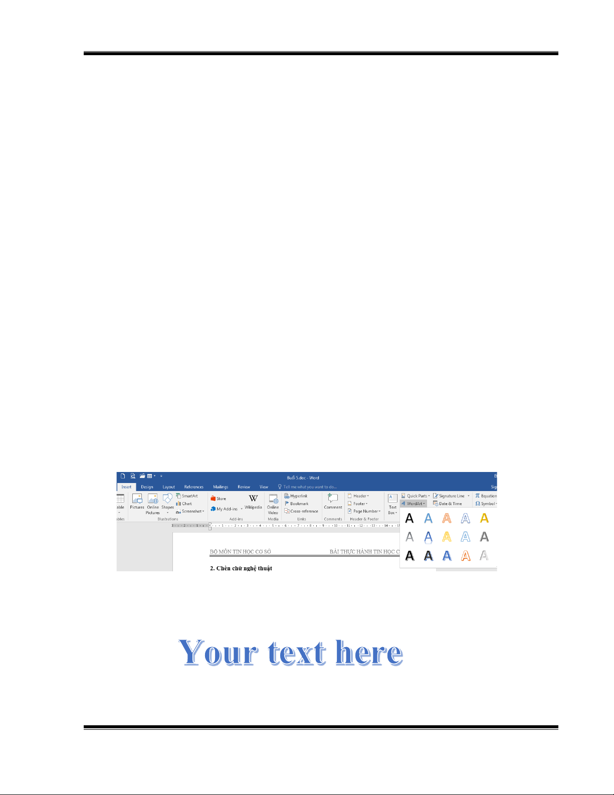 để hiệu chỉnh màu sắc, kiểu chữ, hiệu ứng chữ nghệ thuật. 6 BỘ MÔN TIN HỌC CƠ SỞ
