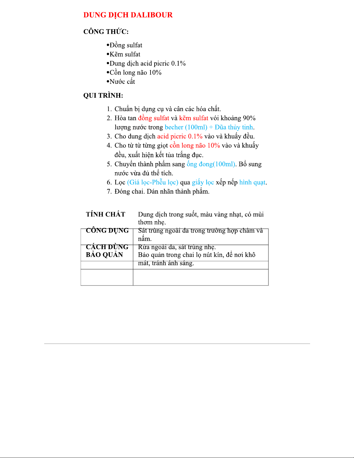 Hướng Dẫn Thực Hành DUNG DỊCH Dalibour - Công Thức và Qui Trình