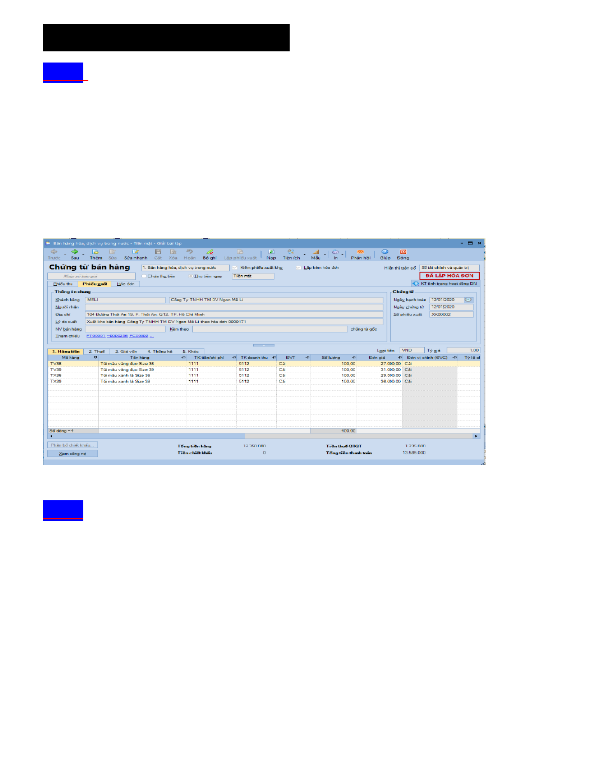 PHÂN HỆ: BÁN HÀNG (KIÊM PHIẾU XUẤT KHO) • ĐỊNH KHOẢN: o NỢ TK 111/ CÓ TK 5112, 3331 o NỢ TK 632/ CÓ TK 155