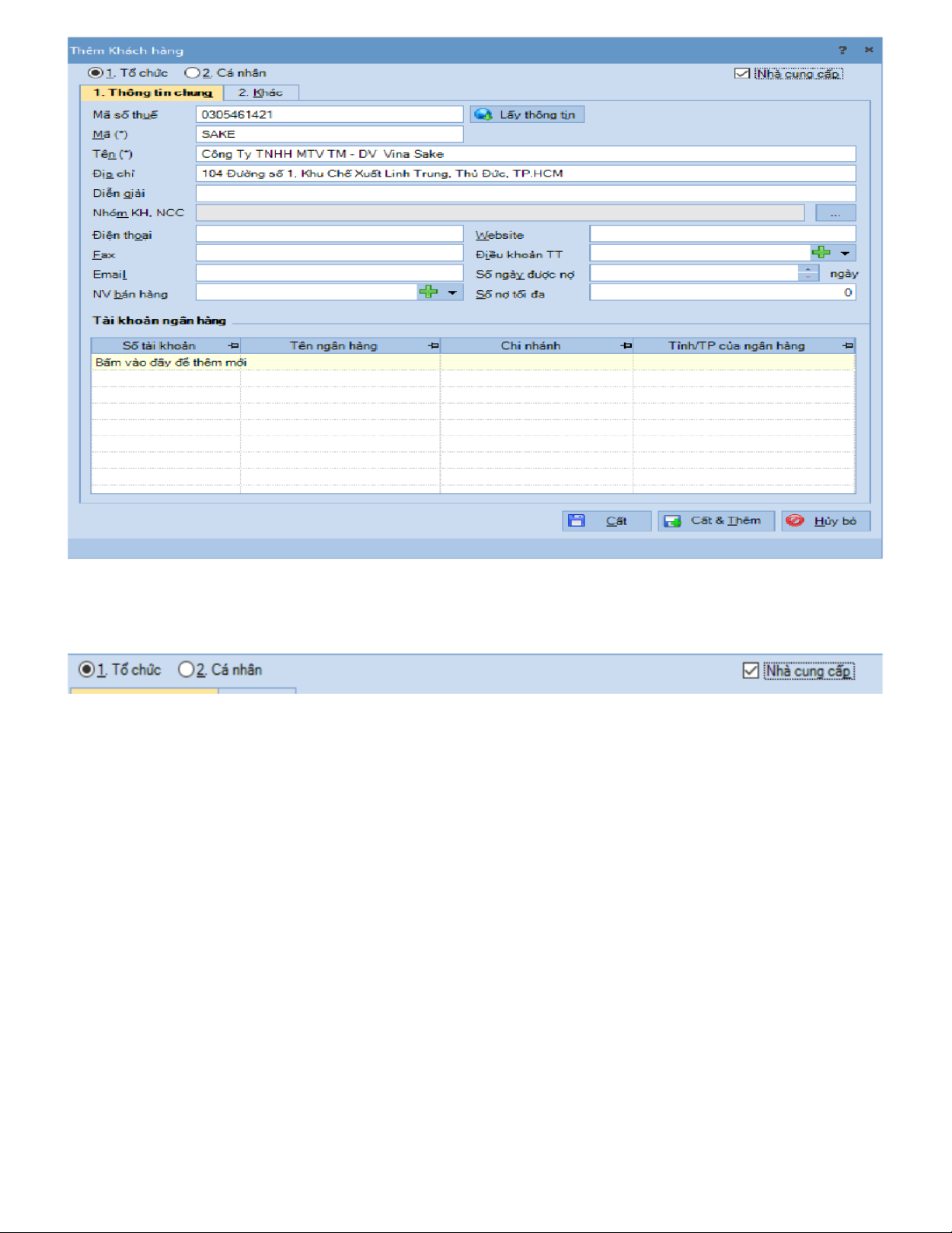 Nhà cung cấp phát sinh mới: Thêm nhà cung cấp mới => nhấn vào dấu + để thêm mới PHÂN HỆ BÁN HÀNG NV1: Bán hàng thu tiền •