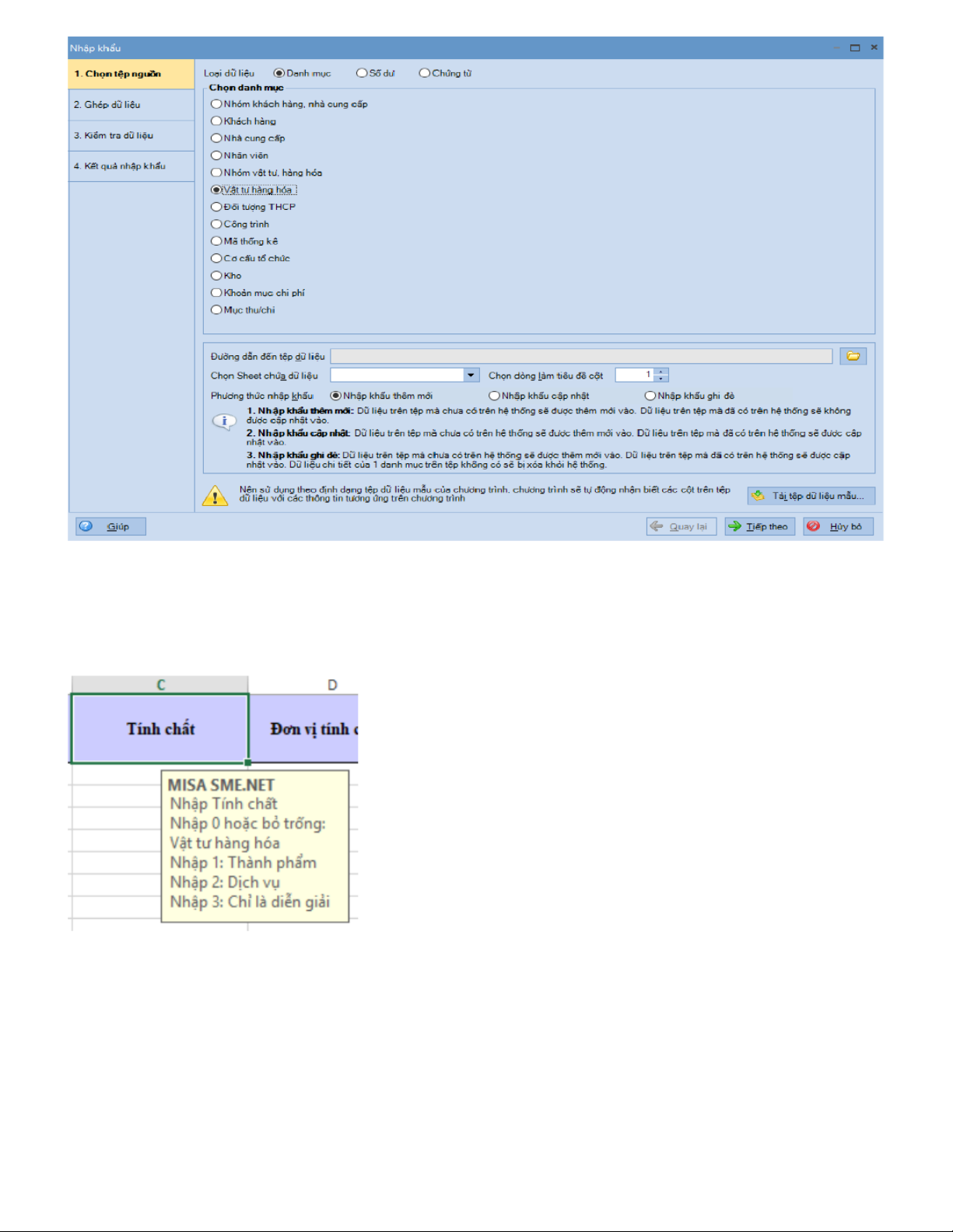 nguồn rồi chọn option Danh mục hoặc Số dư hoặc Chứng từ) Chọn Tải dữ liệu mẫu