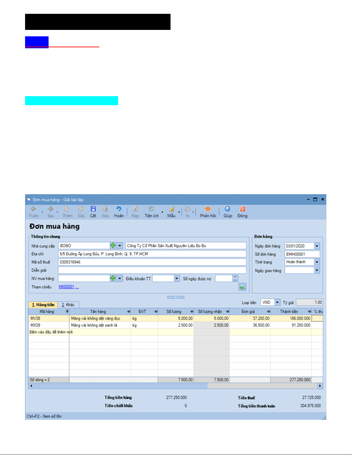ĐẦU SỬ DỤNG PHẦN MỀM PHÂN HỆ MUA HÀNG NV1: Mua hàng •