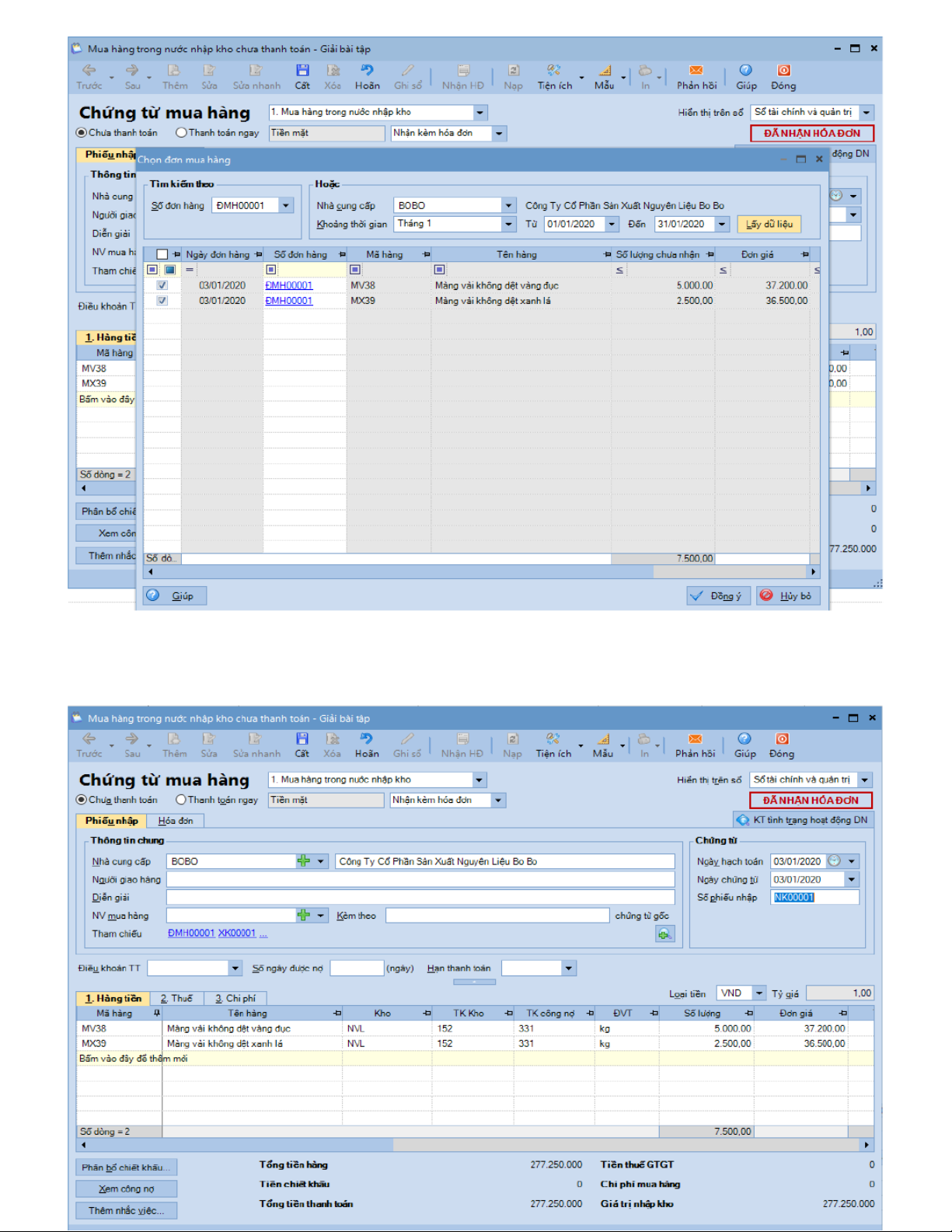 Kế toán mua hàng (KT vật tư): Lập đơn đặt hàng, Chứng từ mua hàng (PNK) Thực hiện trên MiSa: