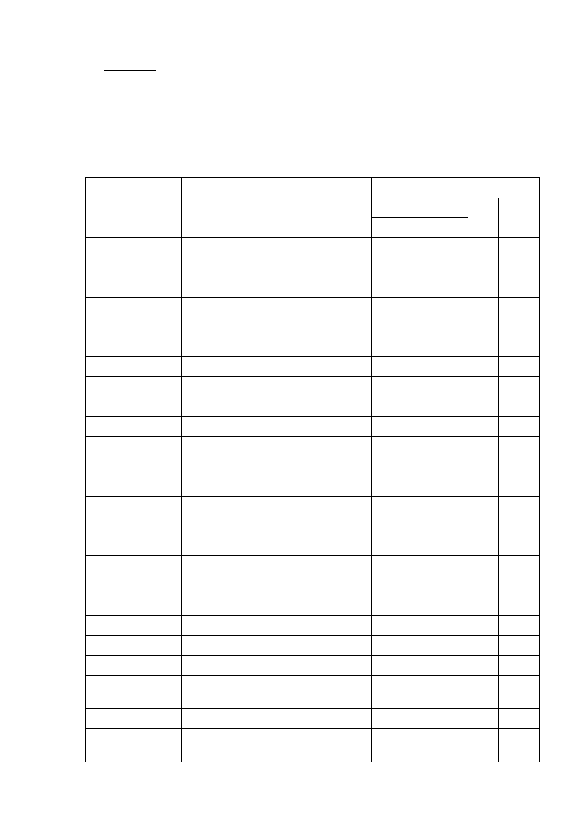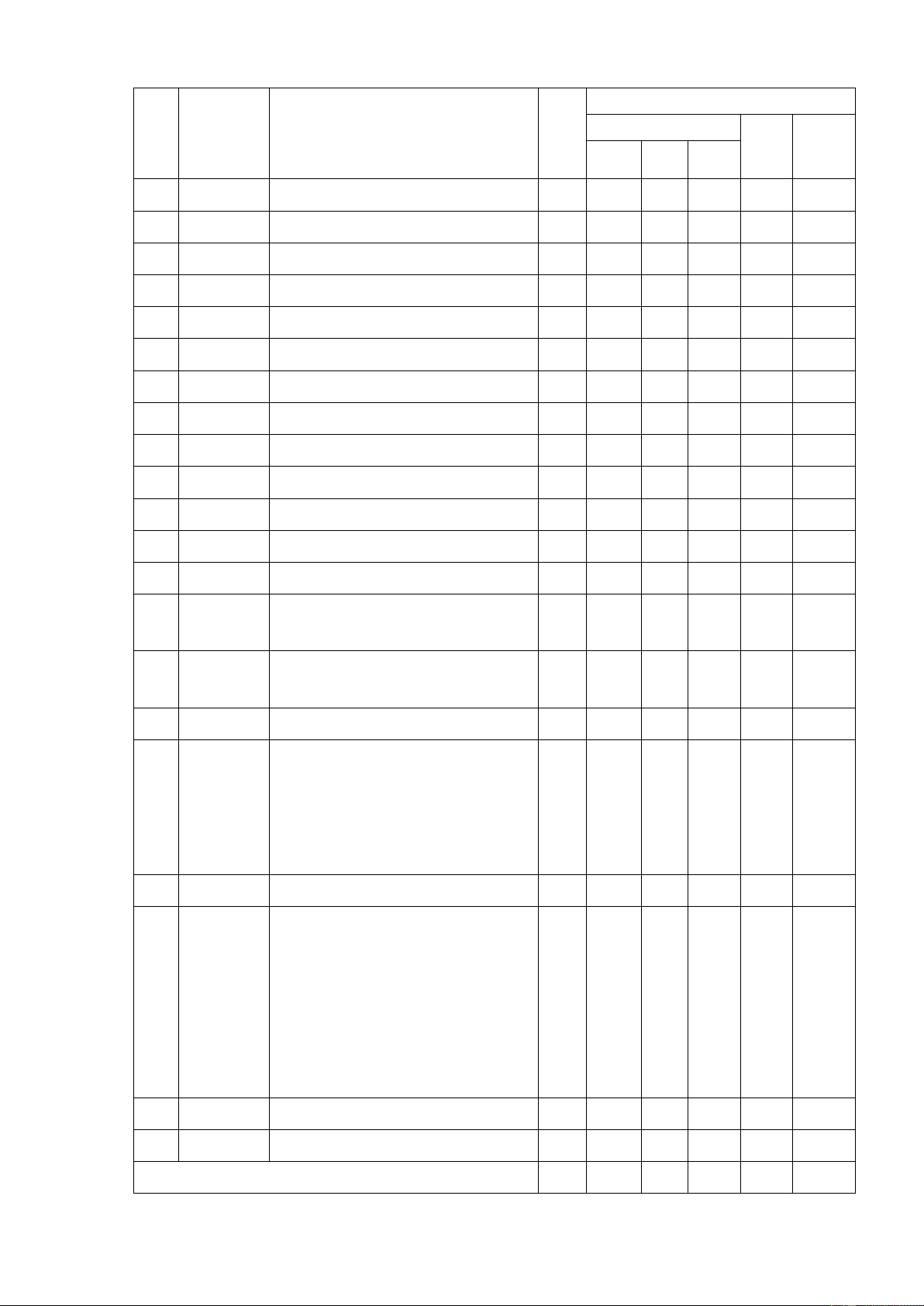 1.6.3.1. Khối kiến thức chuyên ngành bắt buộc (21 TC) Số Phân bổ theo tiết Mã học TT Tên học phần Lên lớp phần tín TN/ chỉ Cộng LT BT TL TH 1 CTKT9 Lập trình hợp ngữ 3 30 0 0 30 60 2 CTKT10