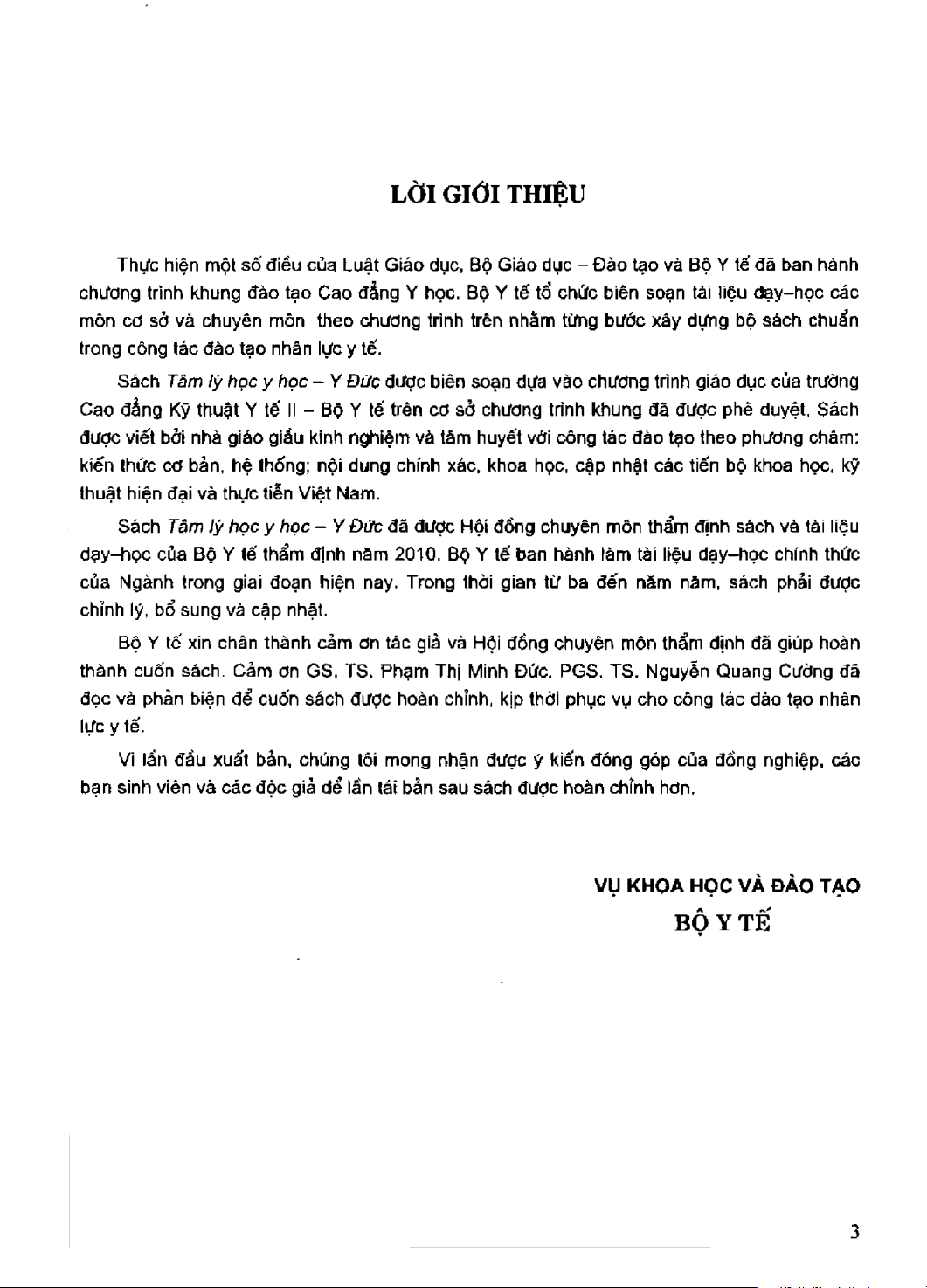 Hướng dẫn TLYD từ Bộ y tế: Chương trình chi tiết và nội dung môn Tâm lý học y học - y đức | Đại học Y Tế Công Cộng