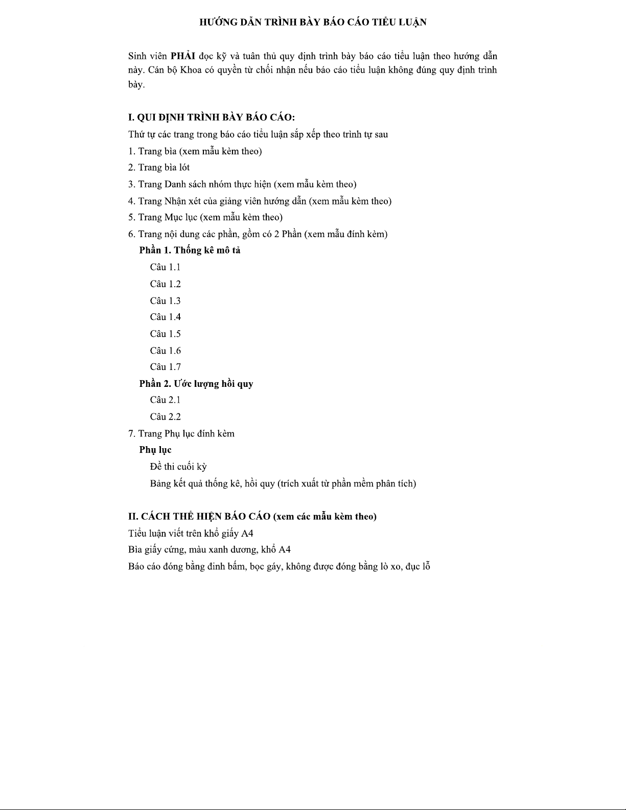 Hướng Dẫn Trình Bày Báo Cáo Tiểu Luận Kinh Tế Lượng Ứng Dụng