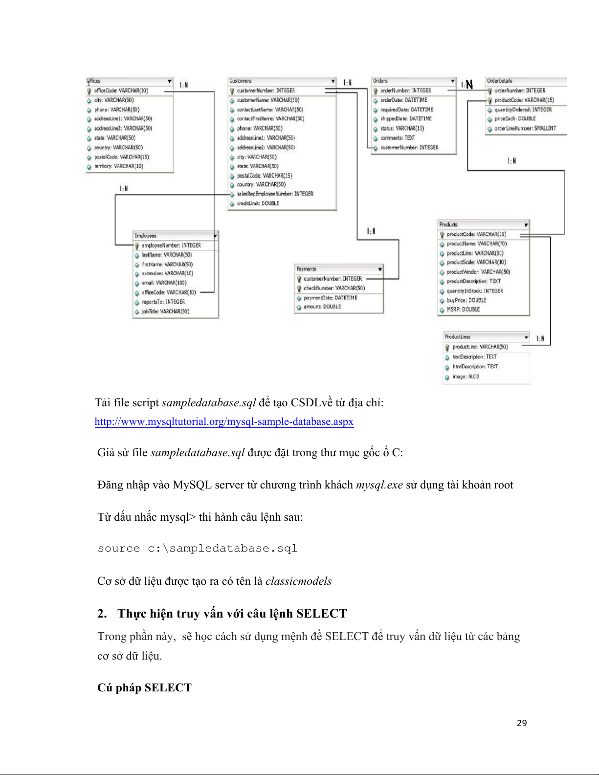 Tải file script sampledatabase.sql để tạo CSDLvề từ địa chỉ: