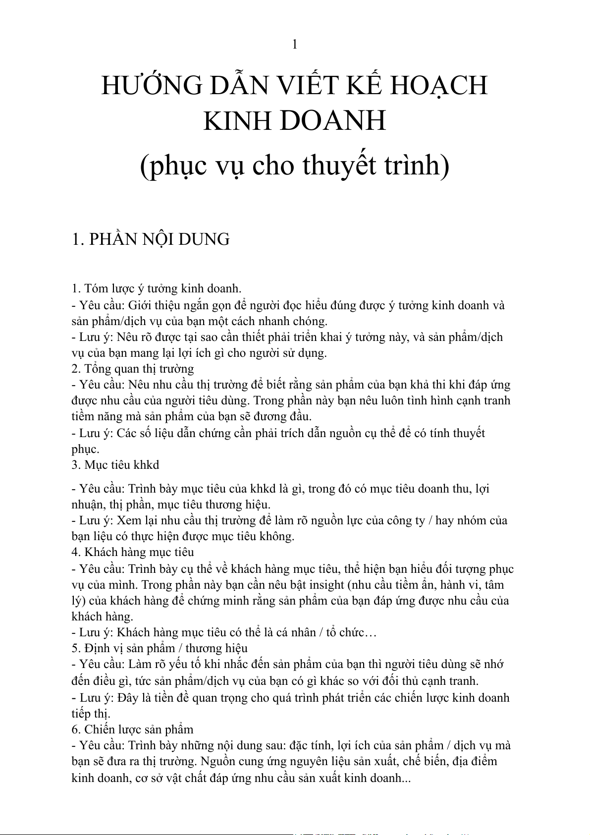 HƯỚNG DẪN VIẾT KẾ HOẠCH KINH DOANH