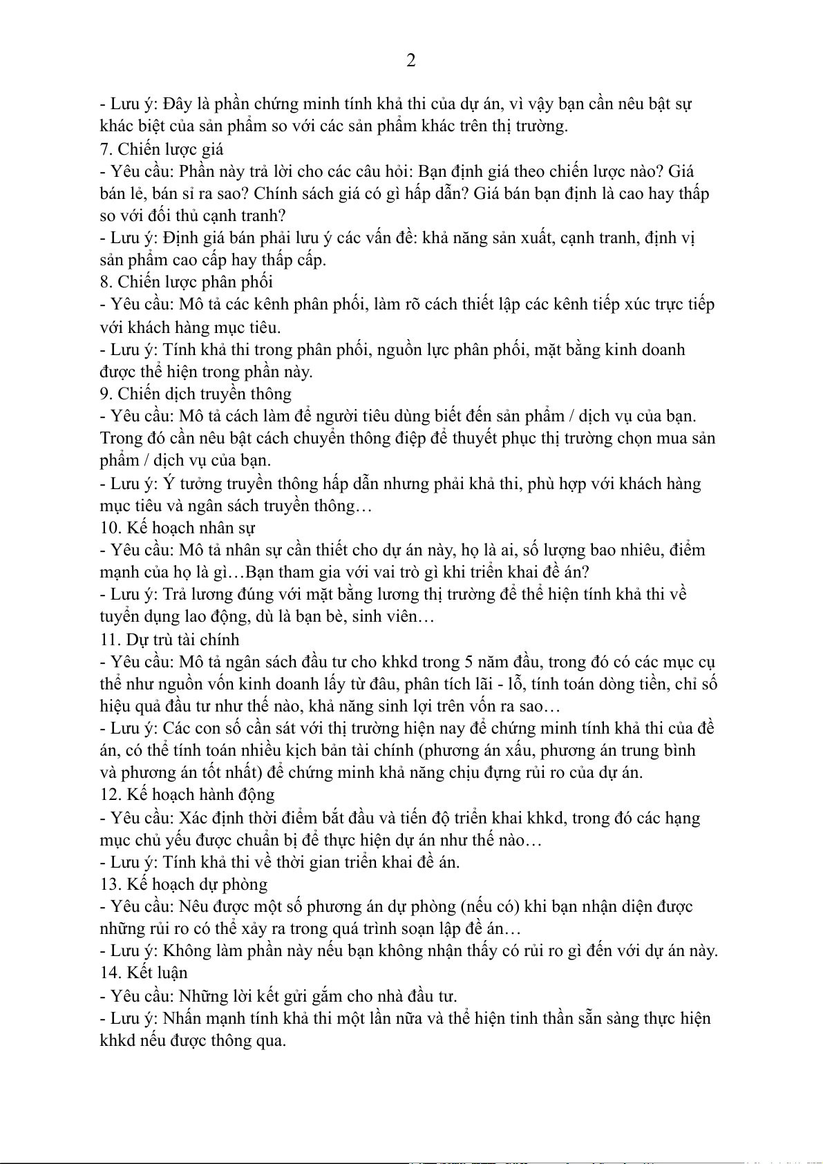- Lưu ý: Không làm phần này nếu bạn không nhận thấy có rủi ro gì đến với dự án này. 14. Kết luận