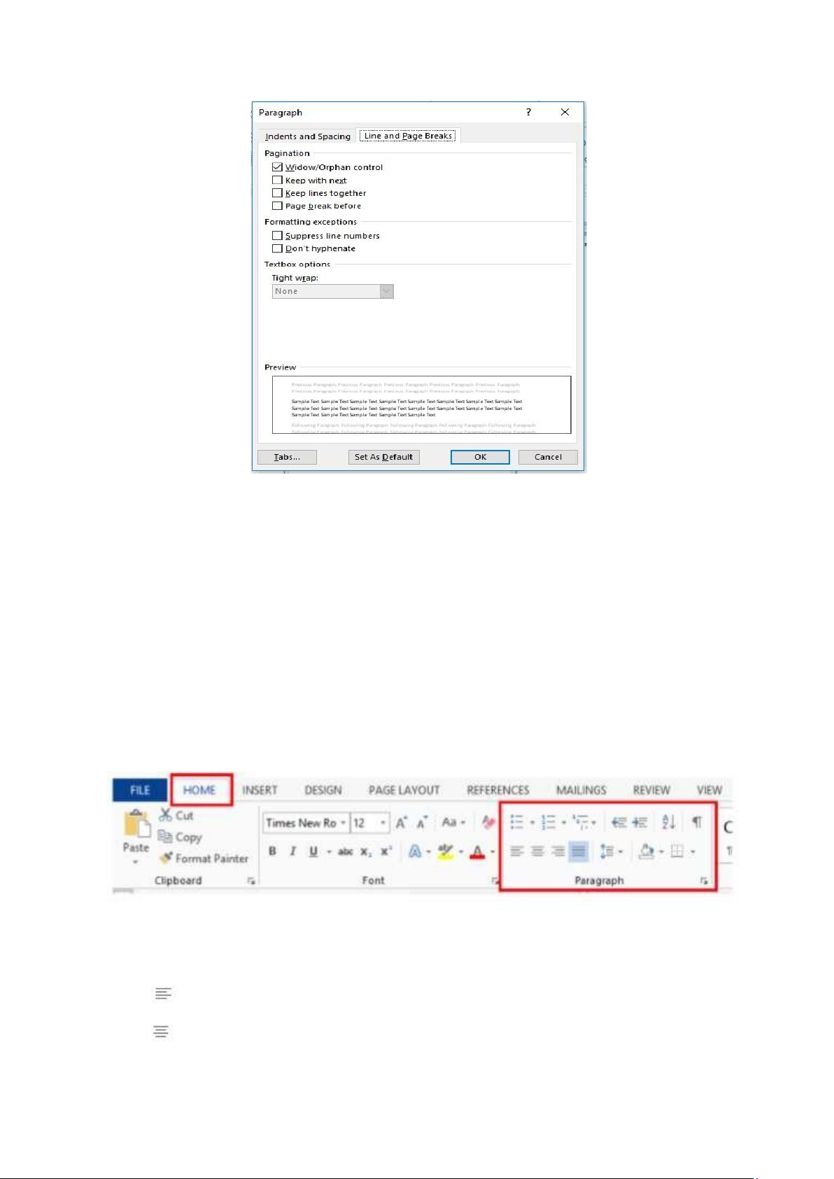 + Thẻ Line and Page Breaks dùng để phân chia trang, tổ chức trang văn bản gồm các thông tin sau: lOMoAR cPSD| 61152560