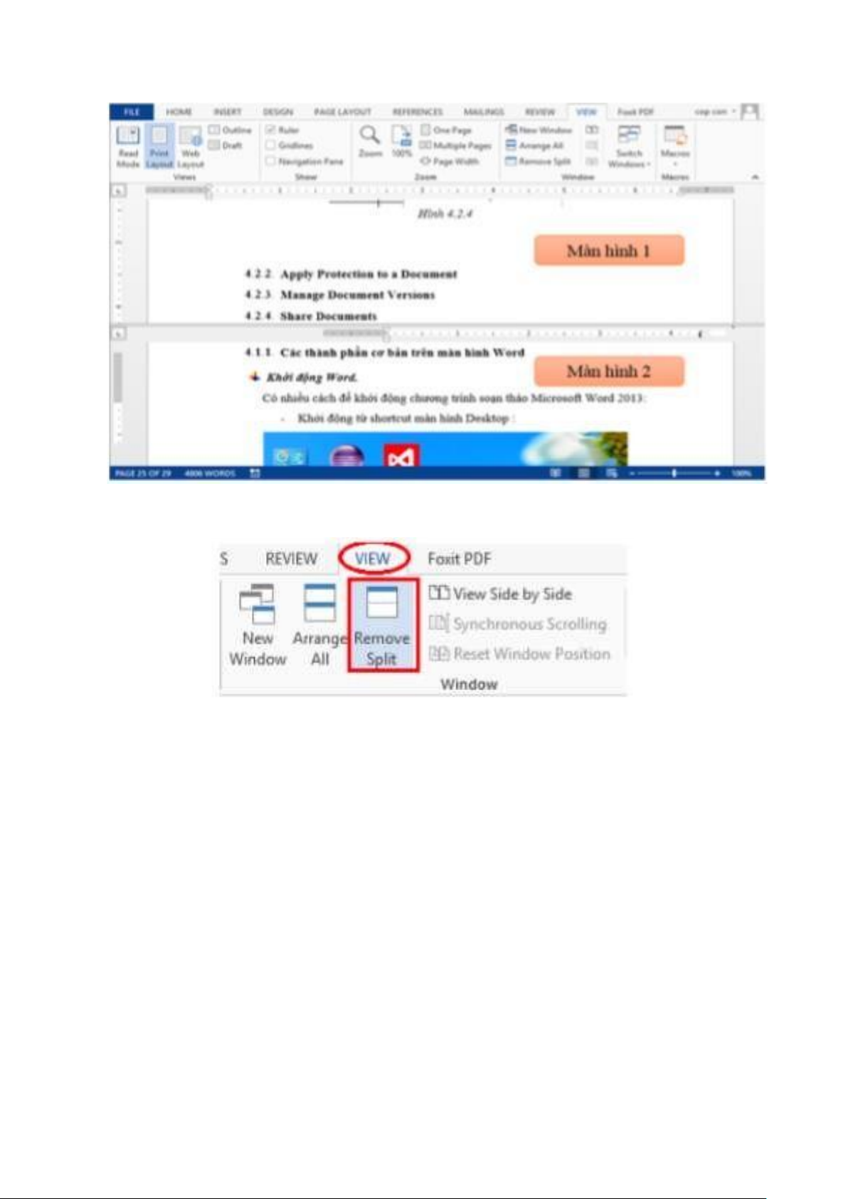 - Để trở lại màn hình như ban ầu Tab View, group Window, Remove Split: