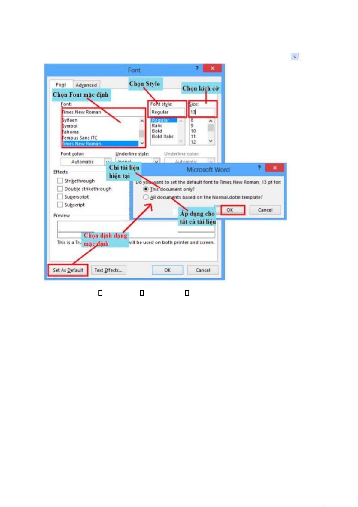 Để thay ổi ịnh dạng font mặc ịnh bạn mở một trang Word trống chọn lOMoAR cPSD| 61152560 Font và m ột số