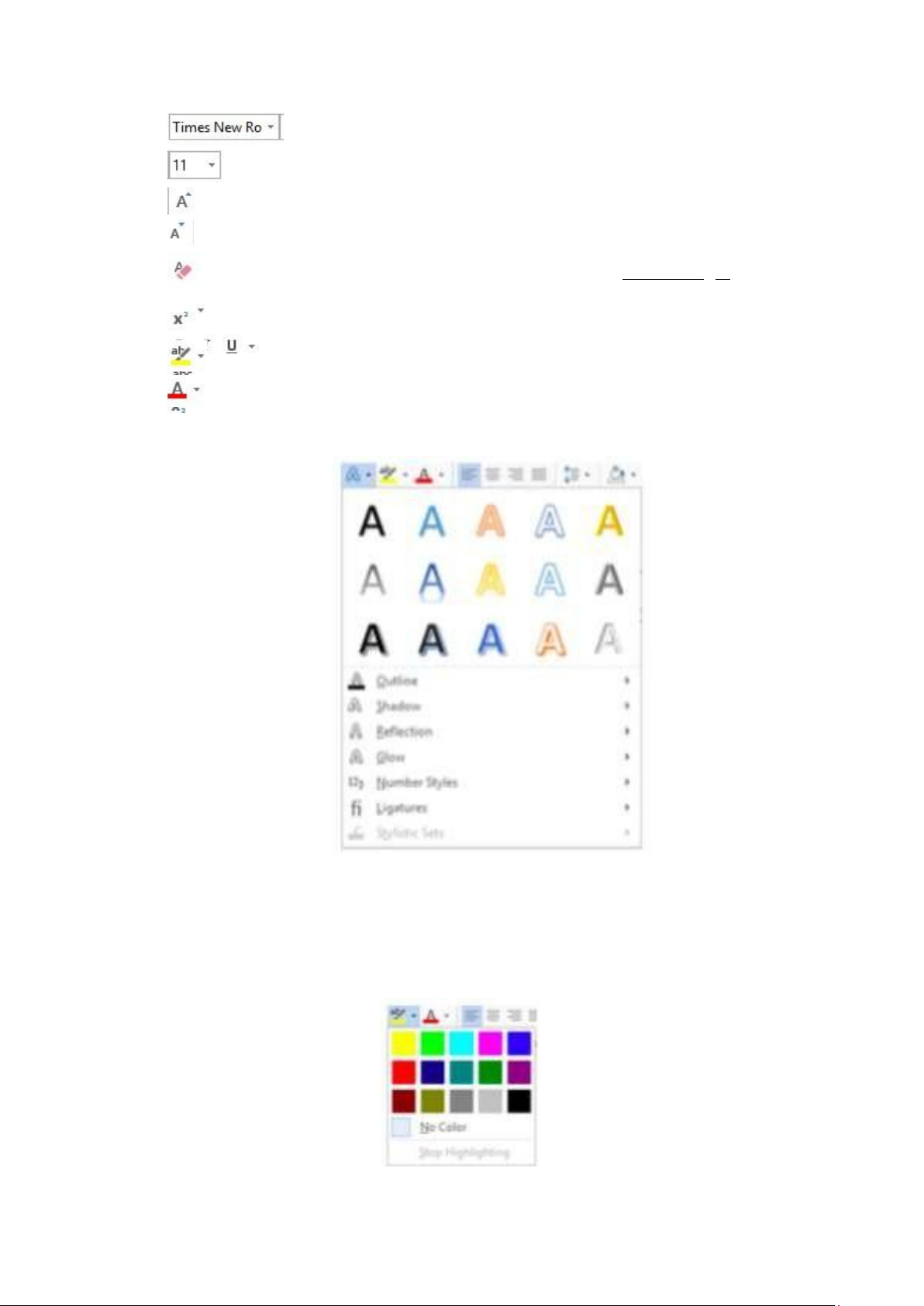 tương ứng của tab Home: chọn font chữ; lOMoAR cPSD| 61152560 chọn cỡ chữ; tăng cỡ chữ giảm cỡ chữ xoá ịnh dạng