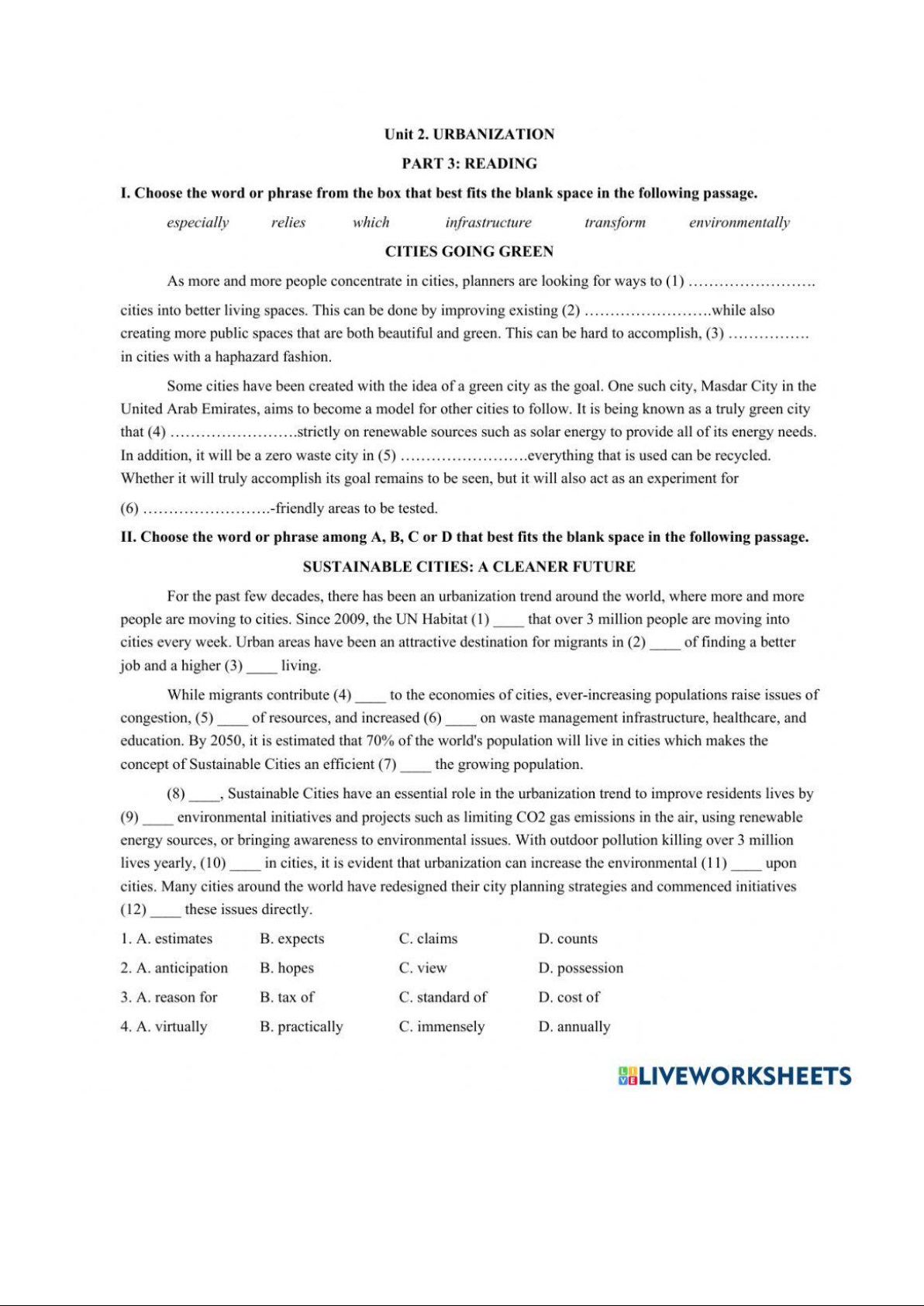 Ôn tập Tiếng anh Unit 2: Urbanization