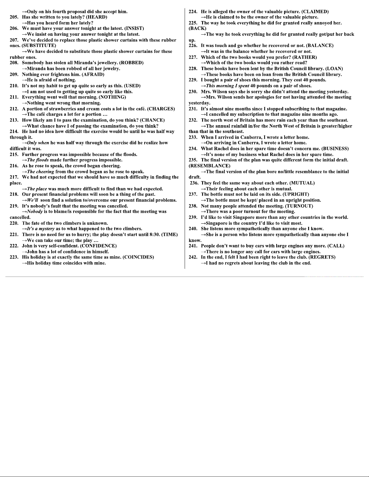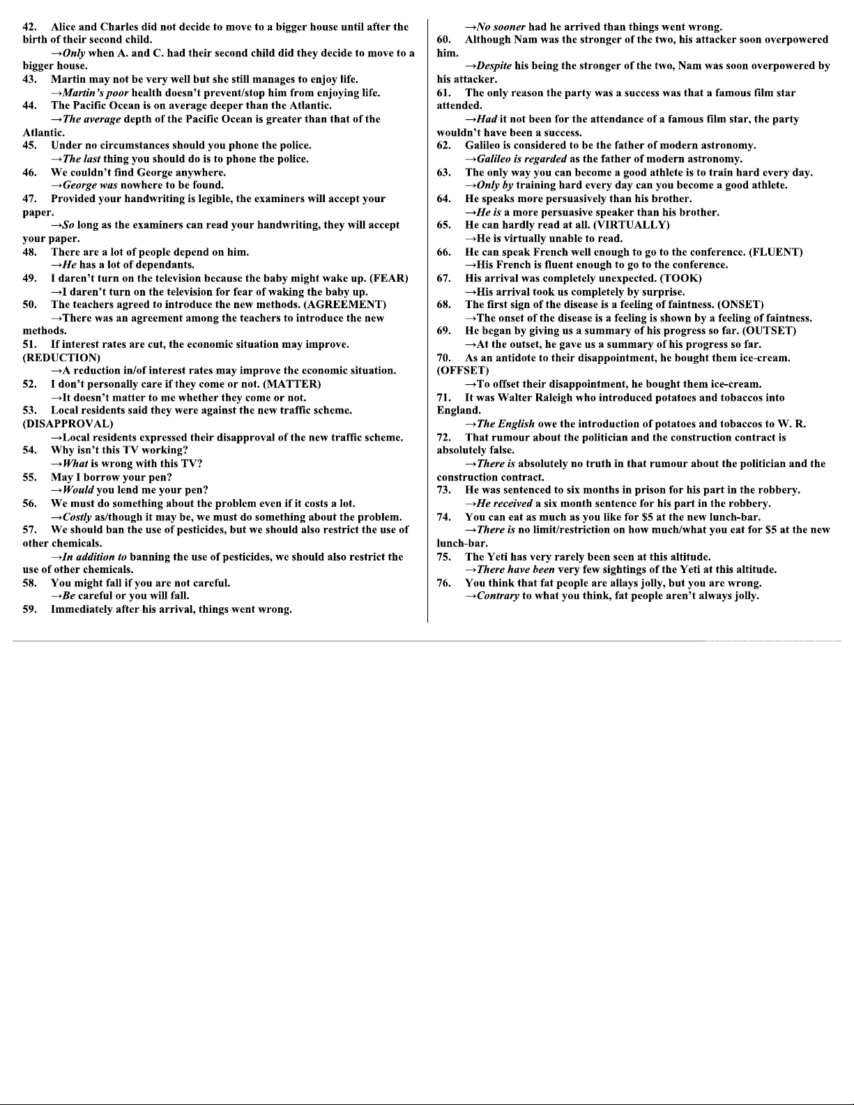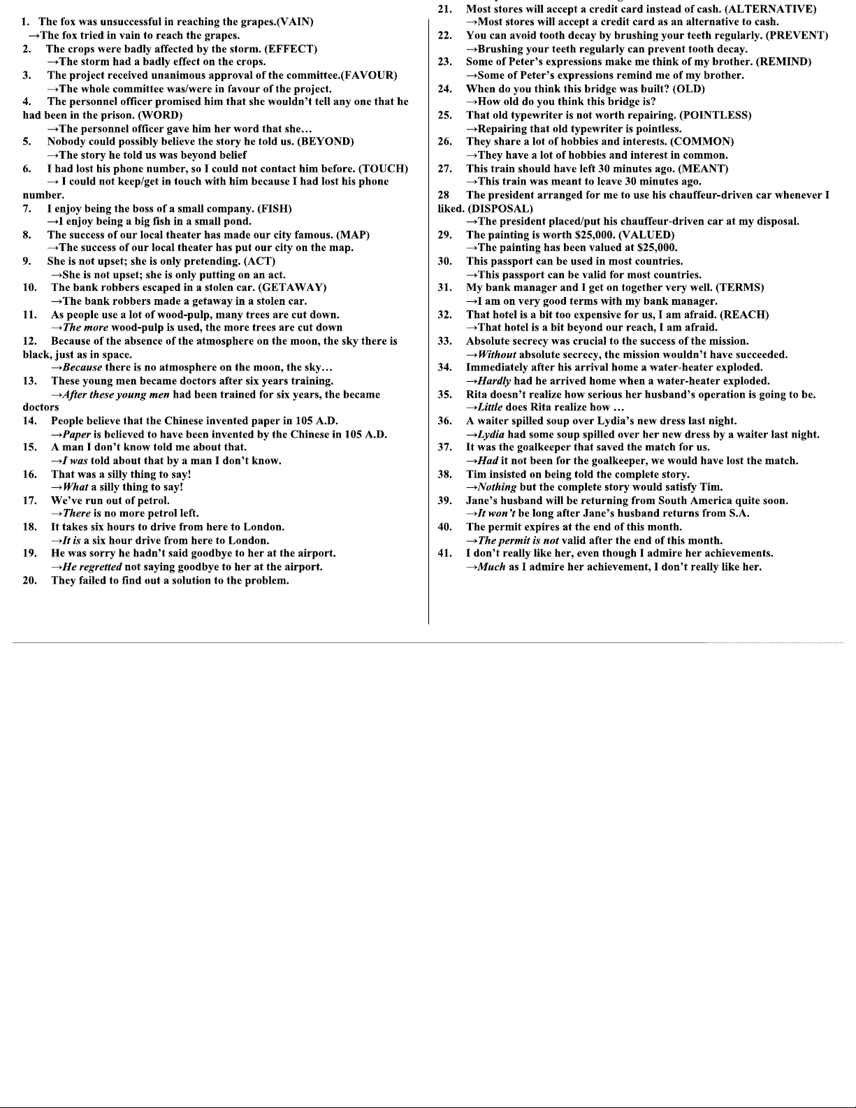 I Sentence Transformation Exercises for Course Code ENGL 101