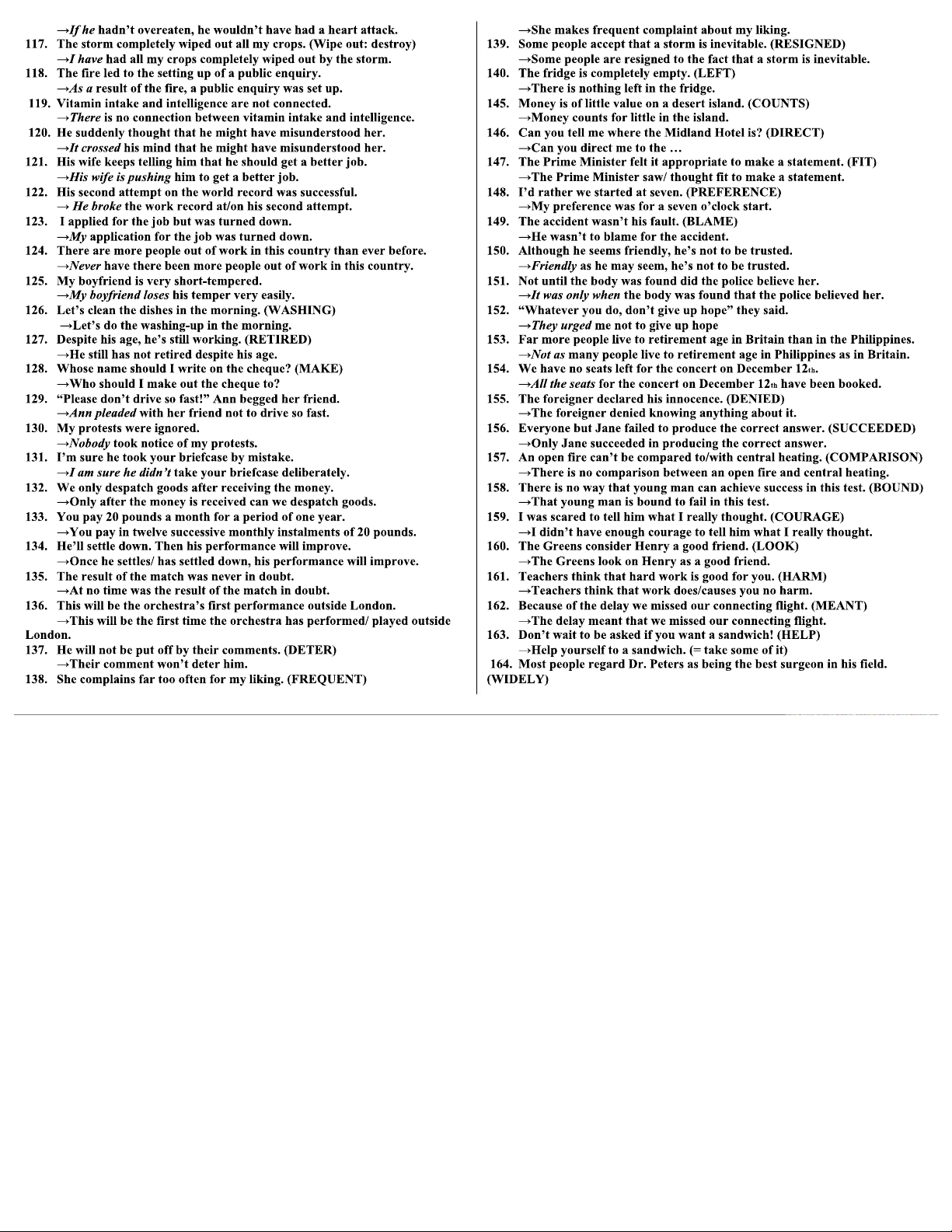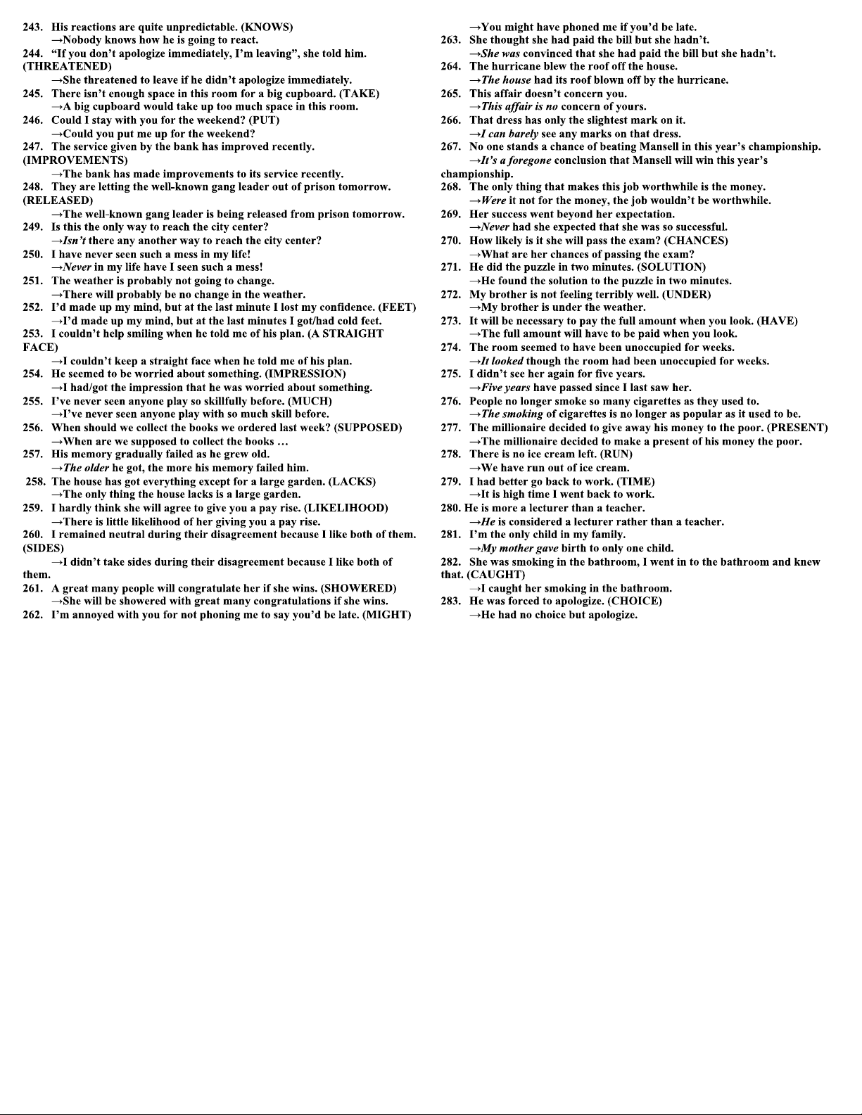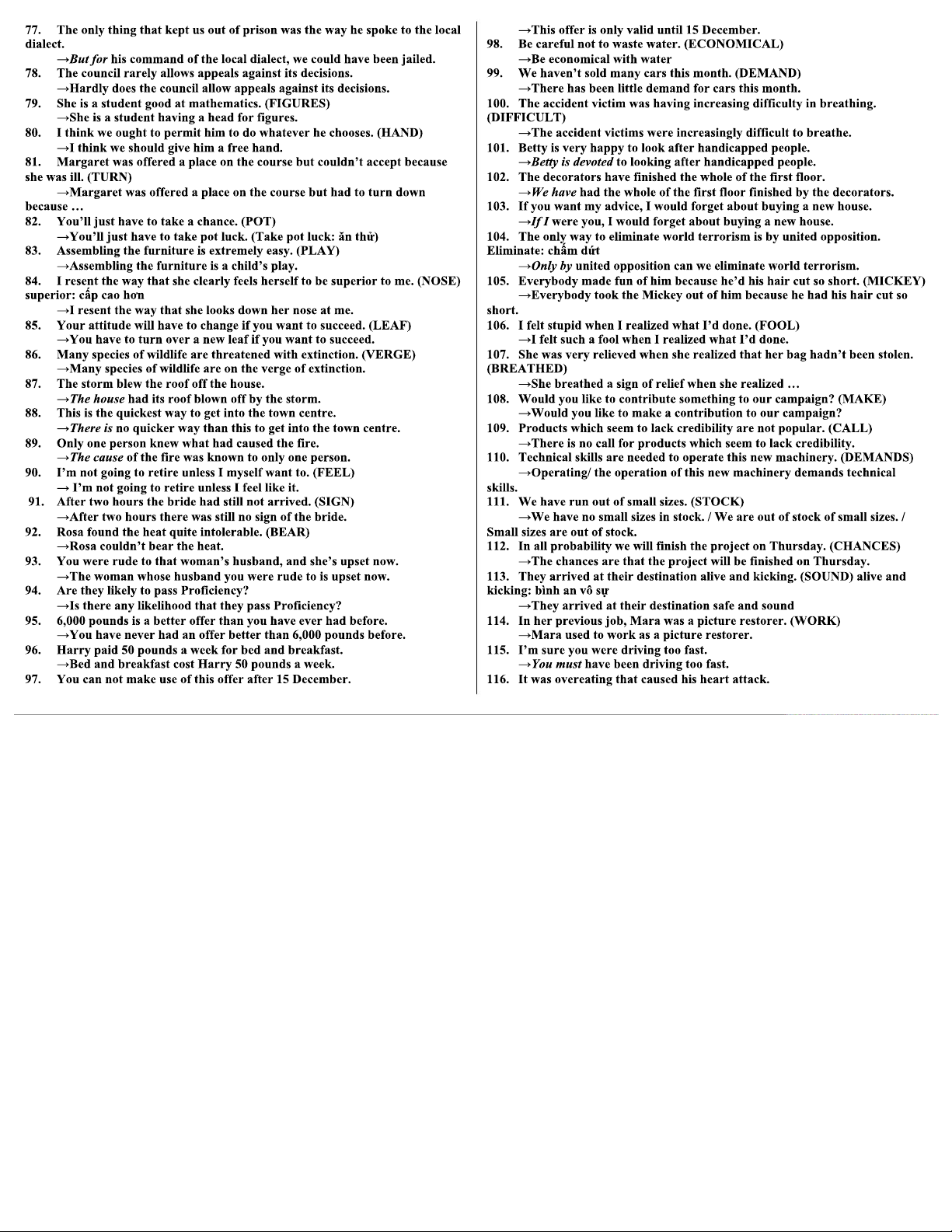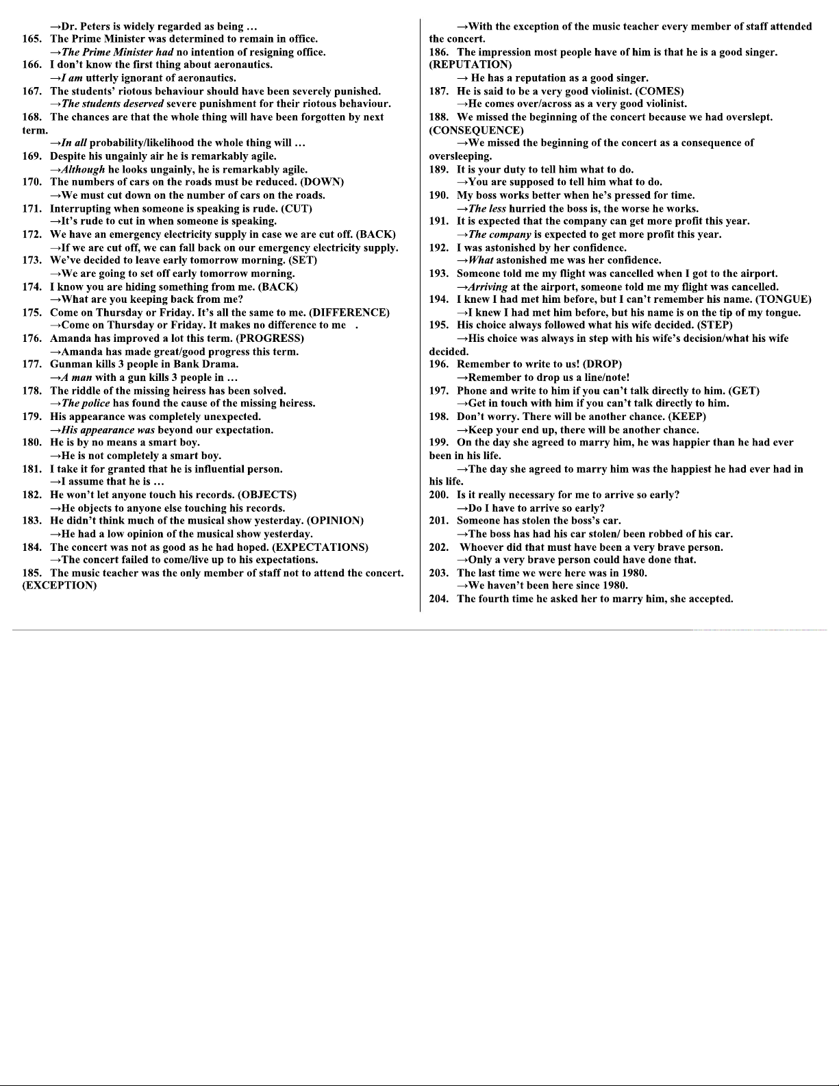I Sentence Transformation Exercises for Course Code ENGL 101