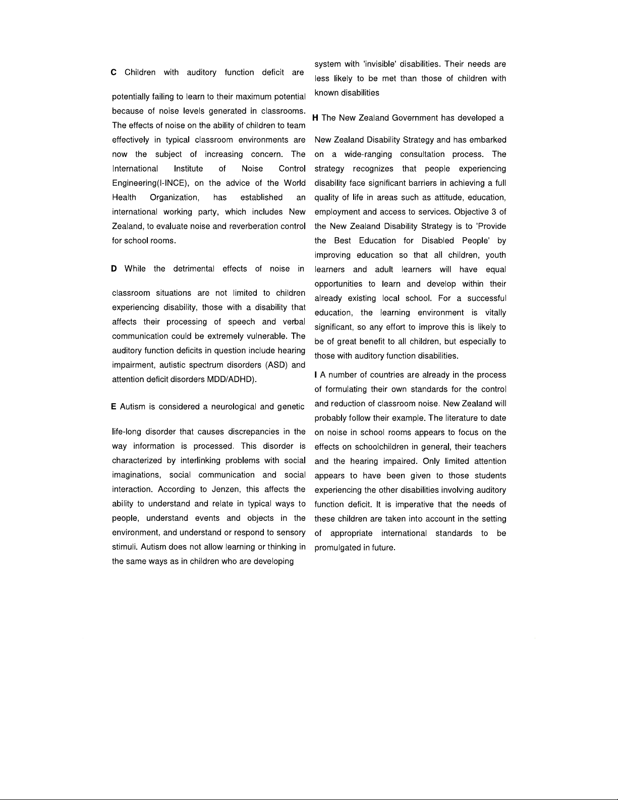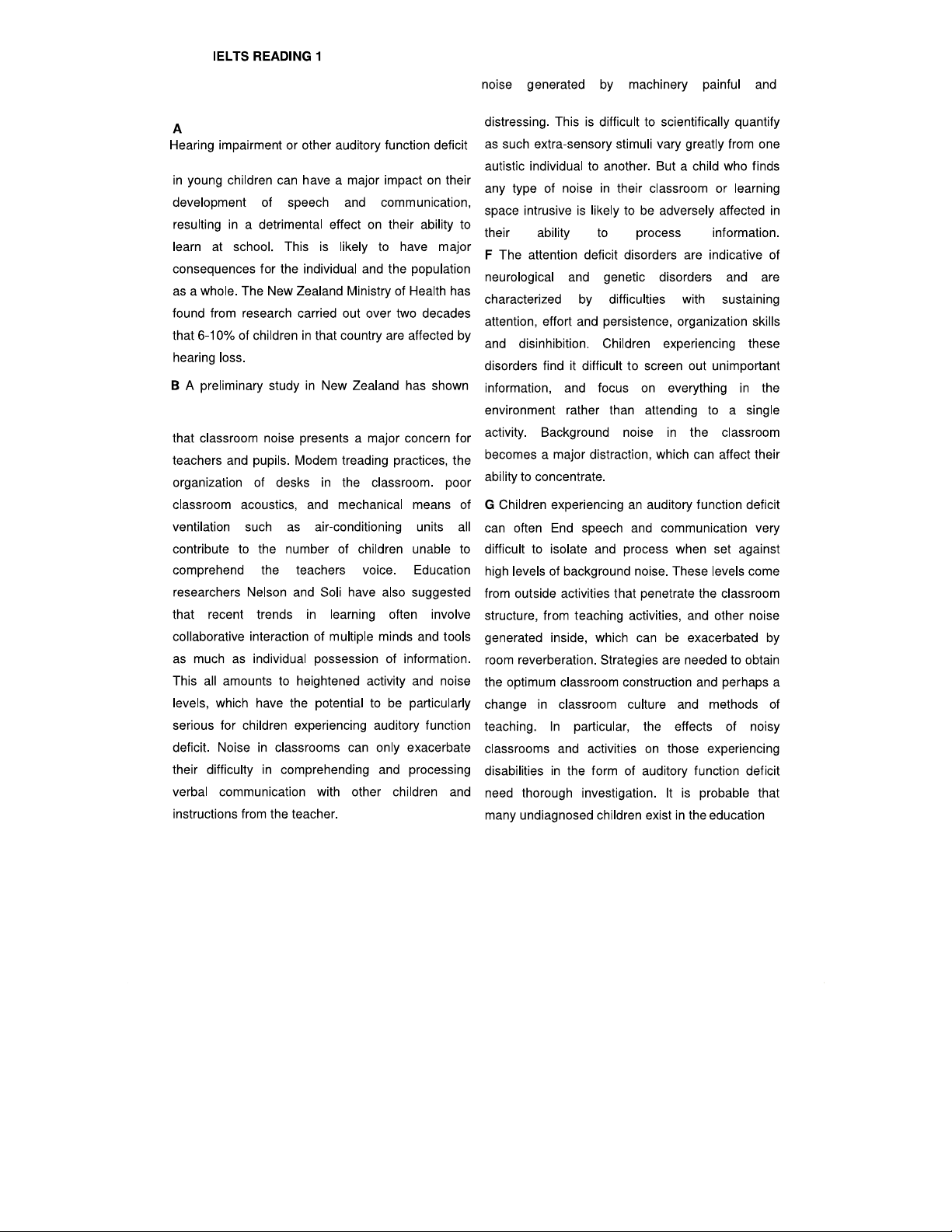 IELTS Academic Reading 1: Effects of Classroom Noise on Children with Auditory Deficits