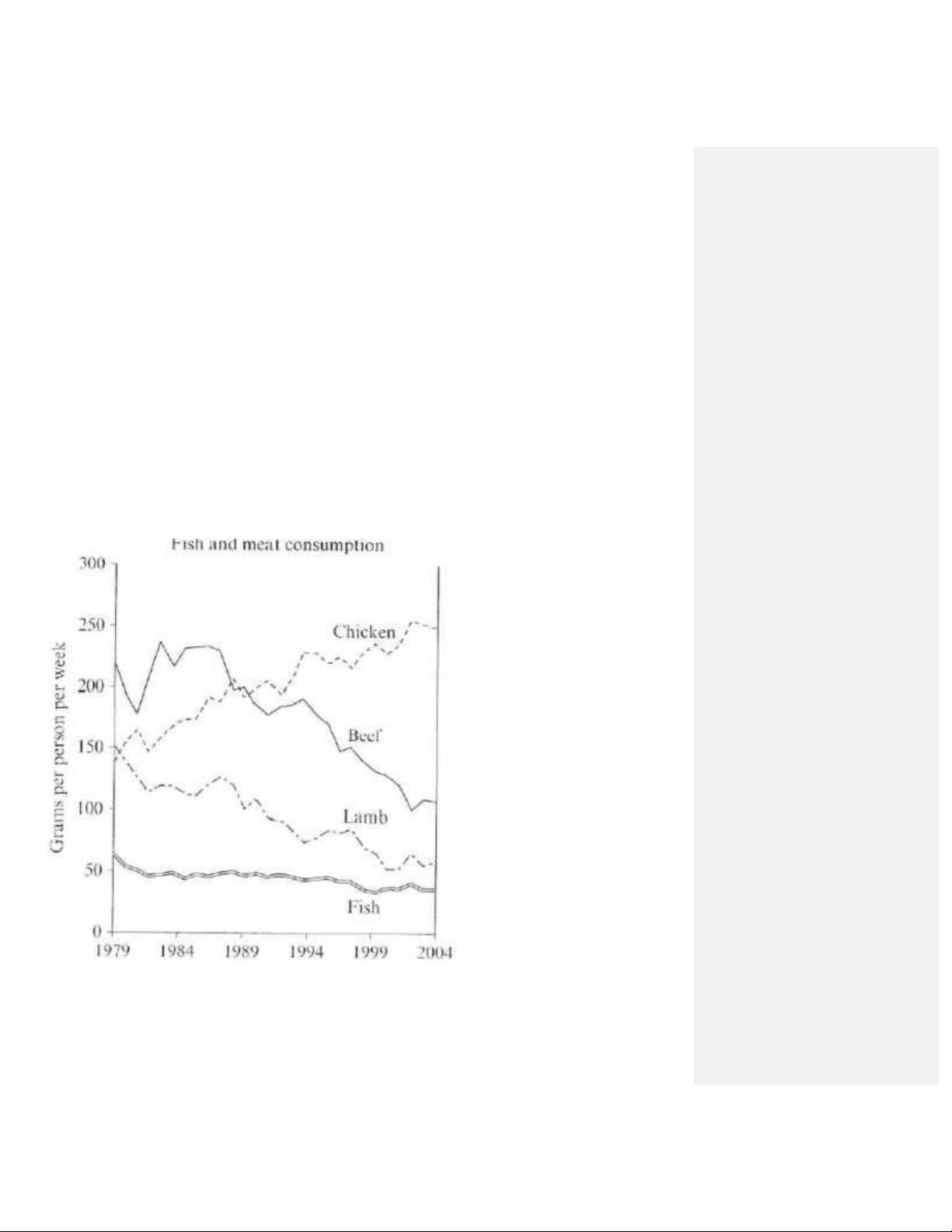 220 and 150 grams, respectively. Beef sales peaked at about 240 grams in 1984, while Lamb reached a low point