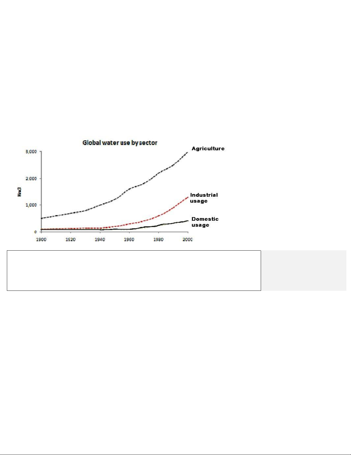 Paragraph 1: Rephrase for line chart + Overall trends Paragraph 2: agriculture Paragraph 3: industrial usage Paragraph 4: domestic usage