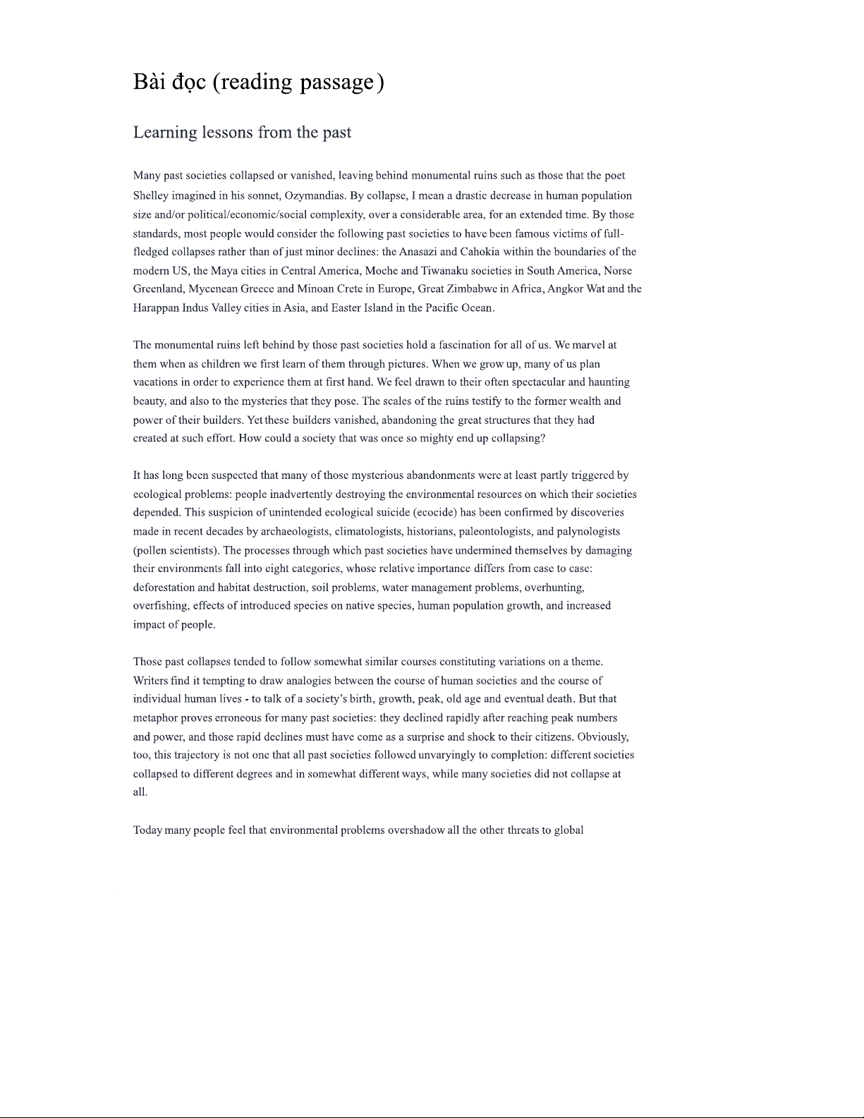 IELTS Reading Practice: Learning Lessons from the Past Analysis