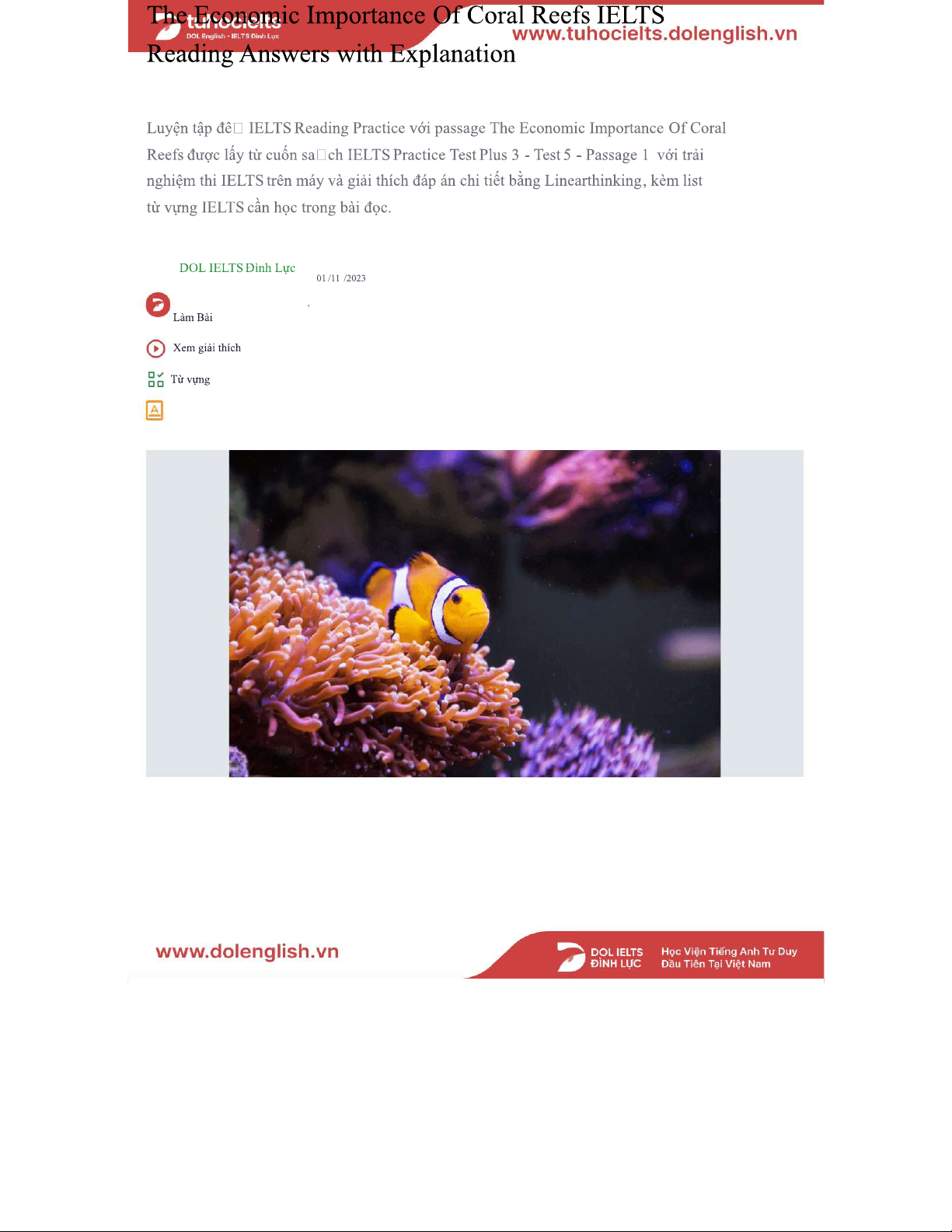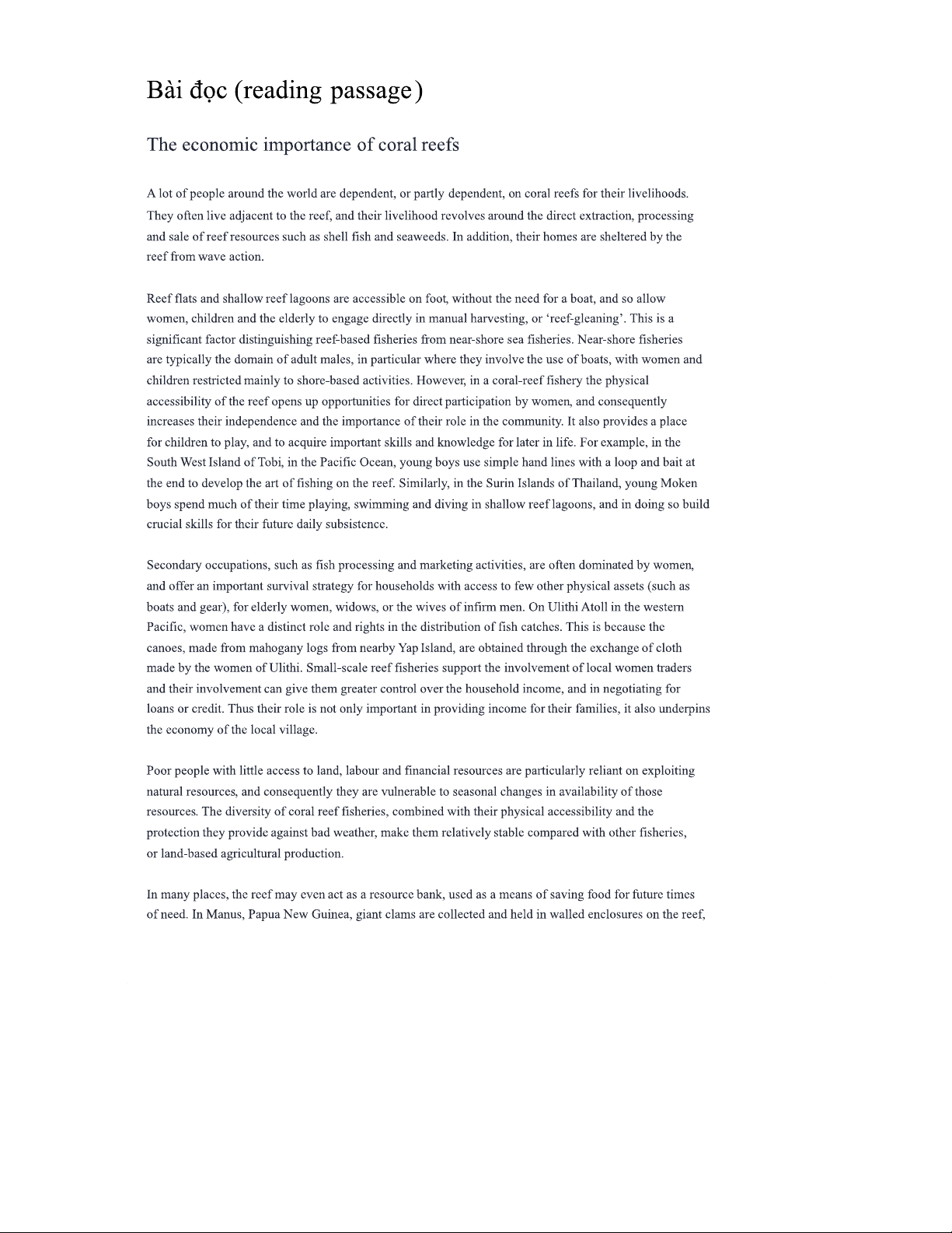 IELTS Reading Practice: The Economic Importance of Coral Reefs