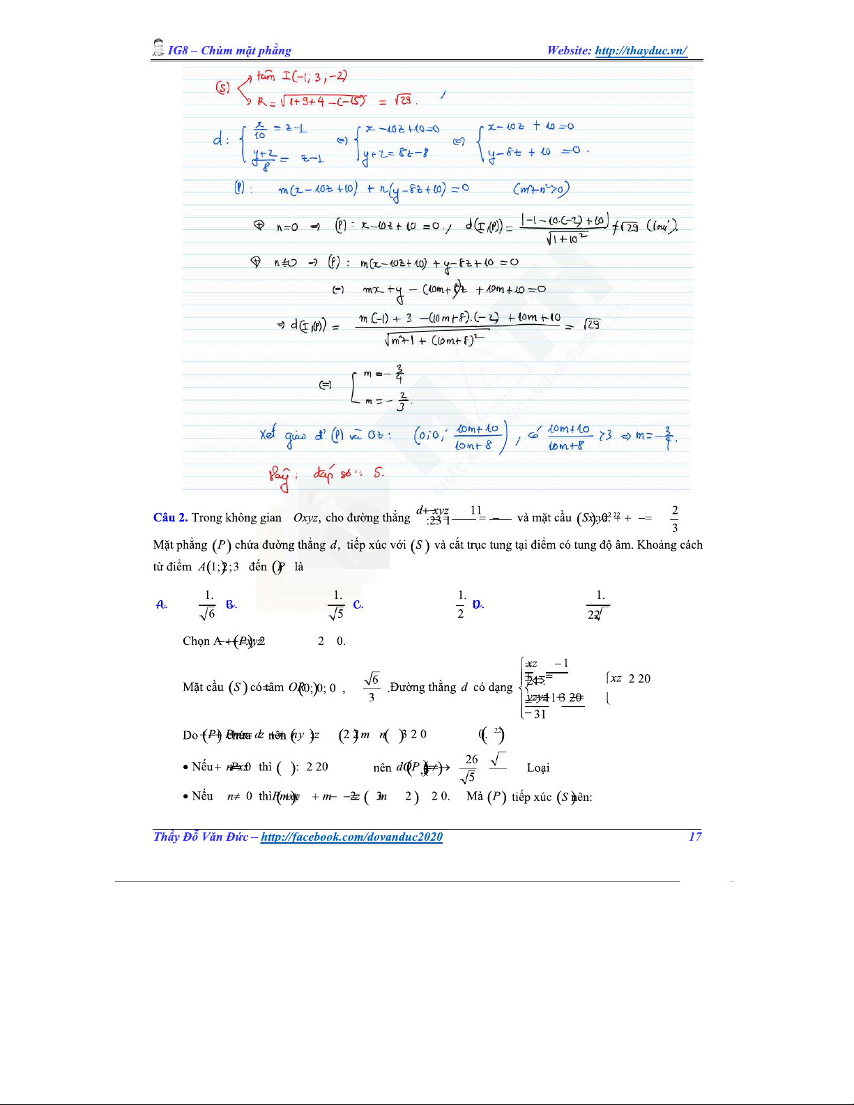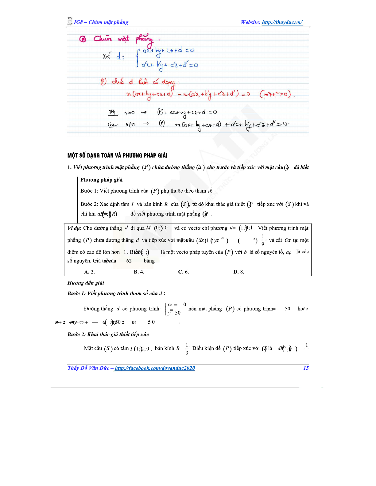 IG8 - Chùm mặt phẳng: Đáp án chi tiết và hướng dẫn viết tay
