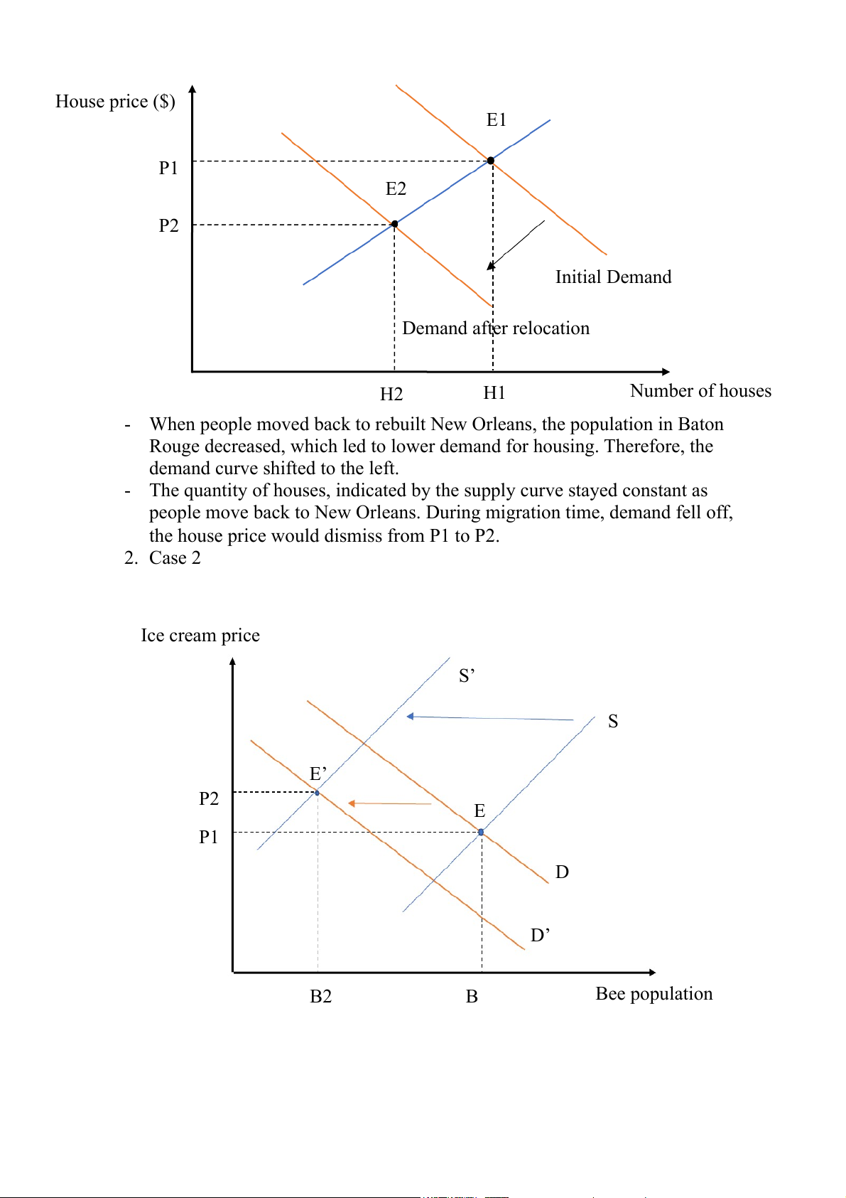 the house price would dismiss from P1 to P2. 2. Case 2 Ice cream price S’ S E’ P2 E P1 D D’ B2 B Bee population