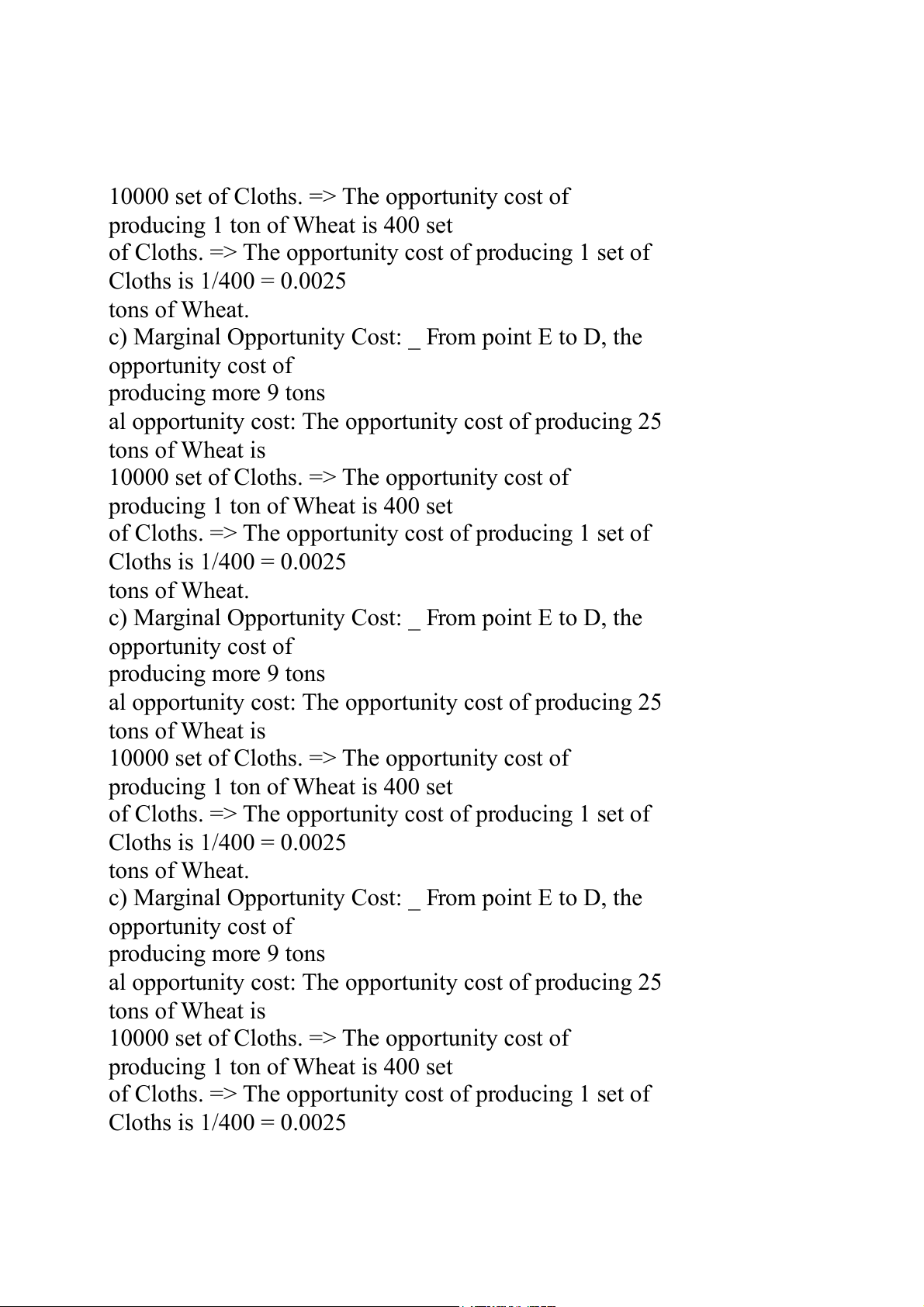 of Cloths. => The opportunity cost of producing 1 set of Cloths is 1/400 = 0.0025 tons of Wheat.