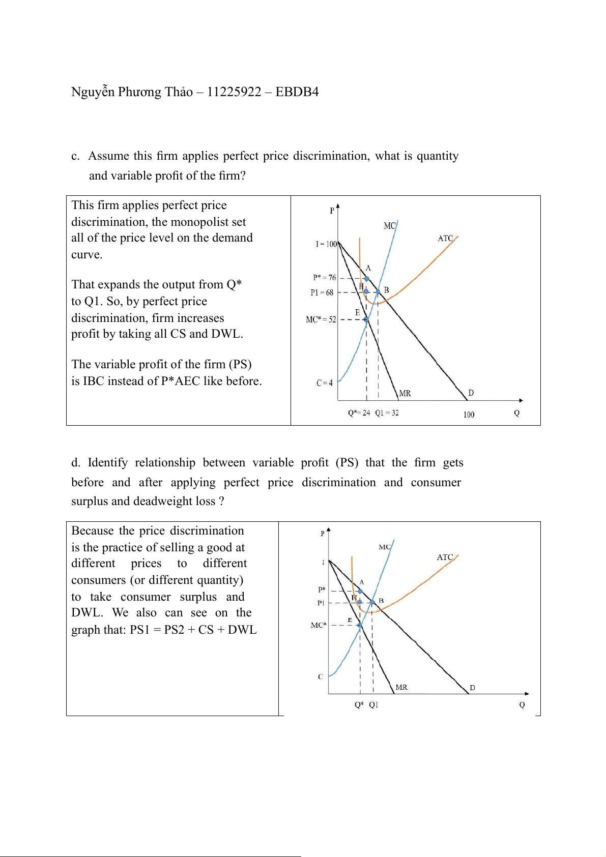 c. Assume this firm applies perfect price discrimination, what is quantity