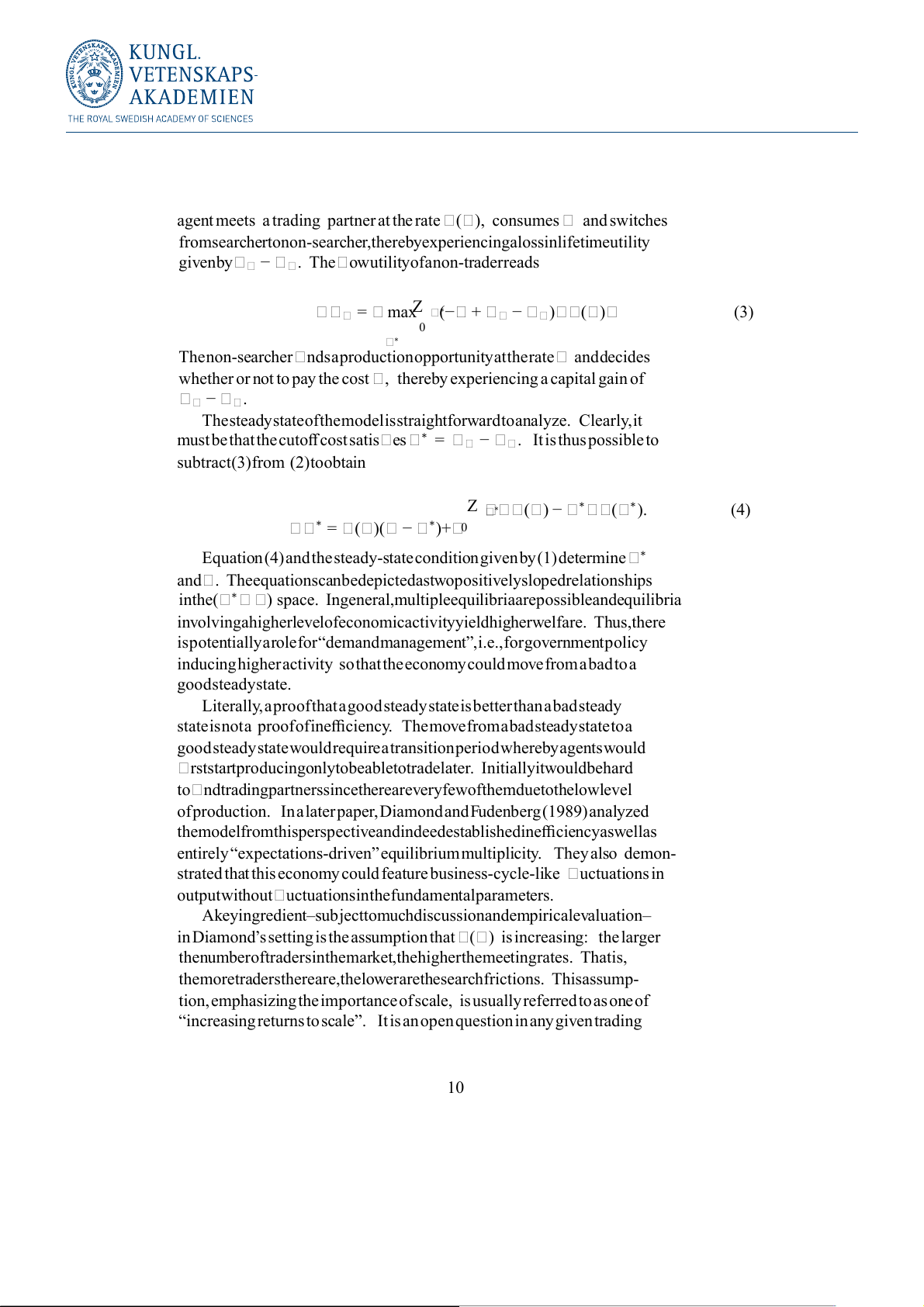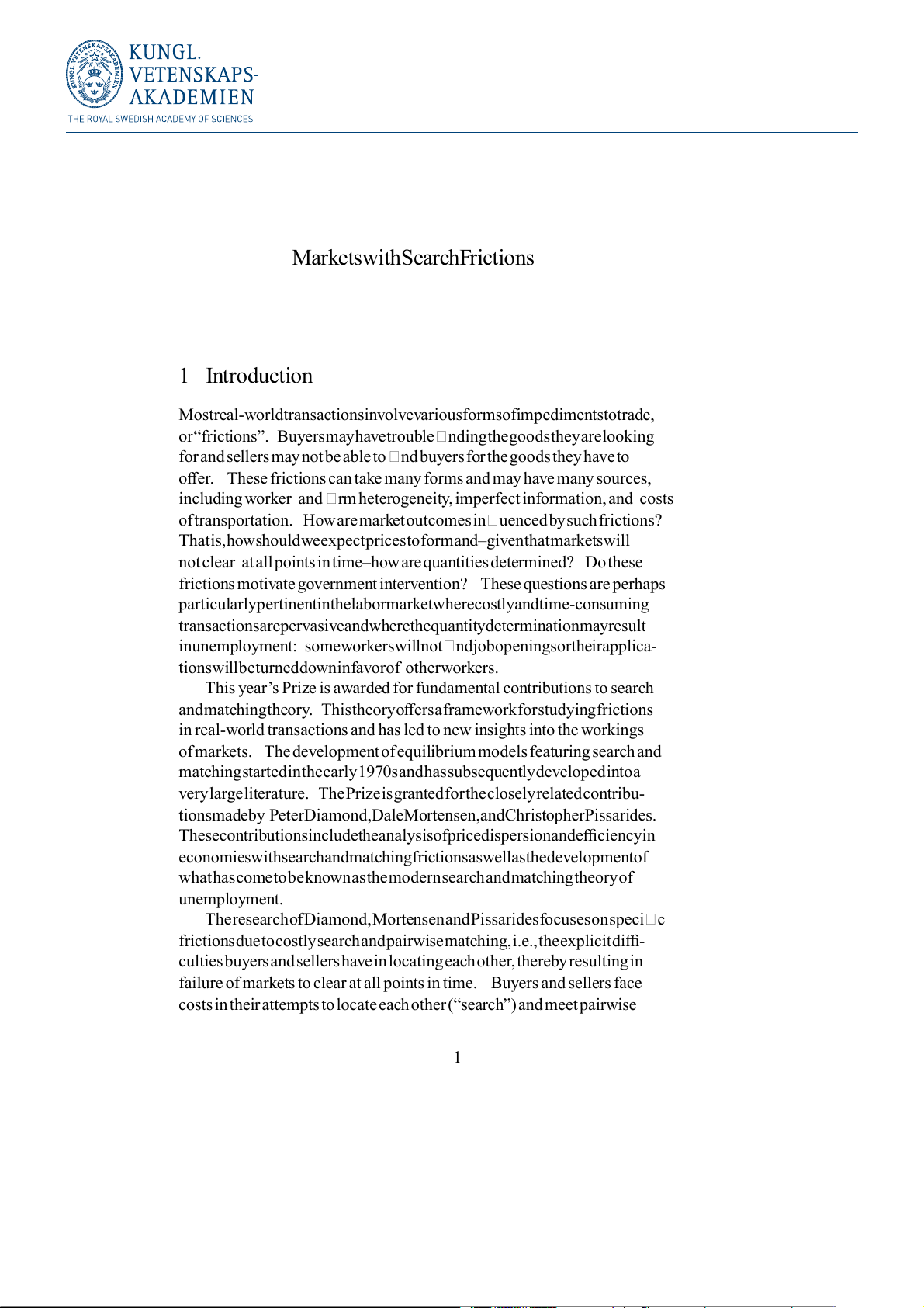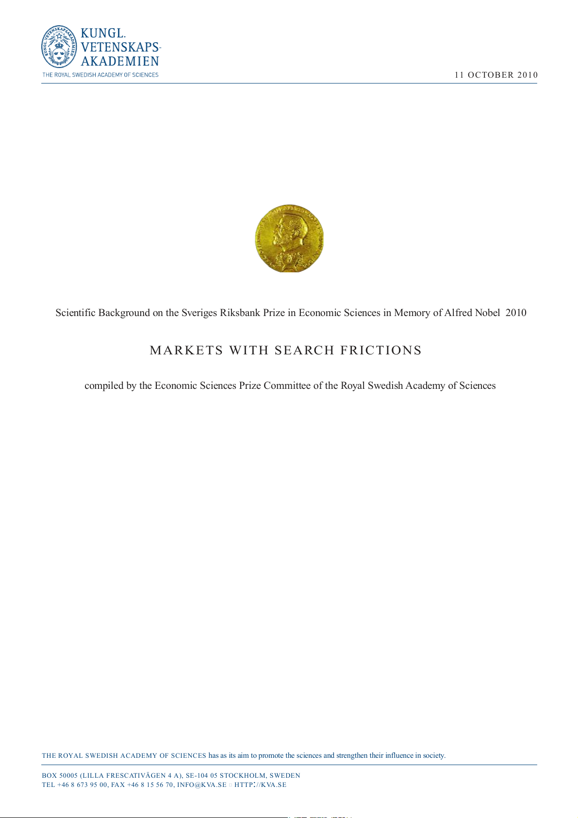 Scientific Background on the Sveriges Riksbank Prize in Economic Sciences in Memory of Alfred Nobel 2010 MARKETS WITH SEARCH FRICTIONS