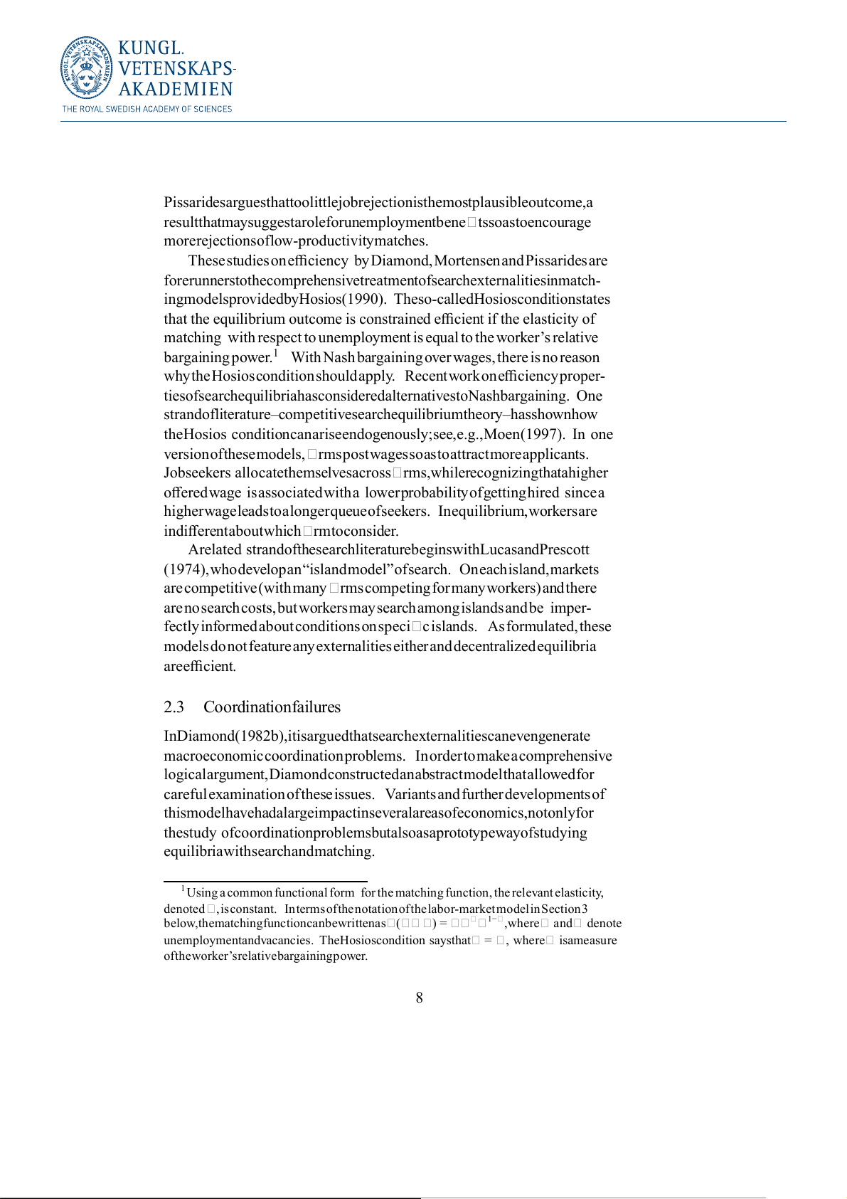 TEL +46 8 673 95 00, FAX +46 8 15 56 70, INFO@KVA.SE HTTP://KVA.SE MarketswithSearchFrictions 1 Introduction