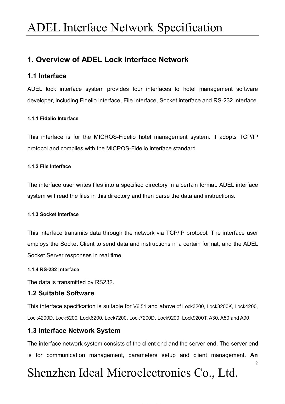 1. Overview of ADEL Lock Interface Network 1.1 Interface